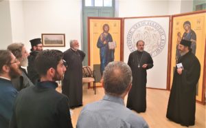 Ακολούθησε επίσκεψη των συμμετεχόντων στη Θεολογική Σχολή Εκκλησίας Κύπρου, όπου ξεναγήθηκαν από το Διευθυντή της Σχολής, Πρωτοπρεσβύτερο Κυπριανό Κουντούρη.