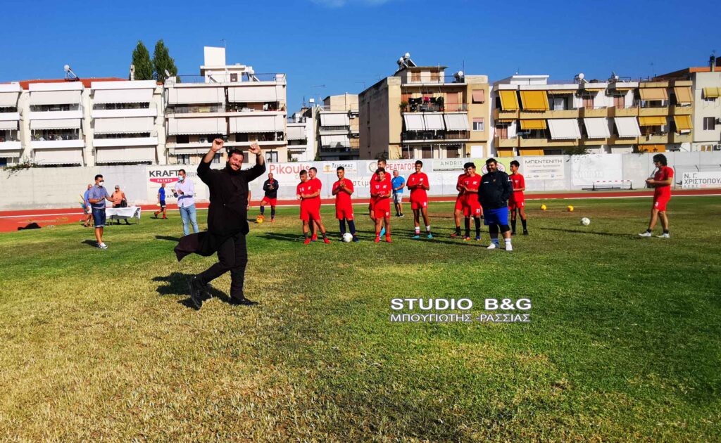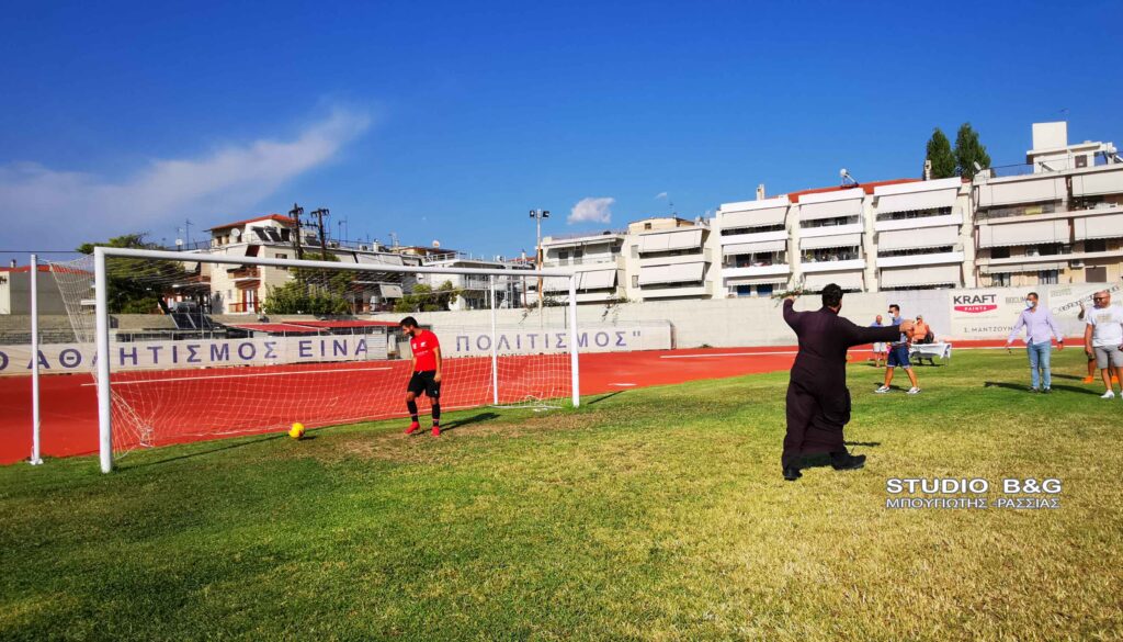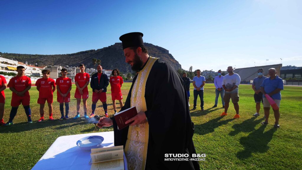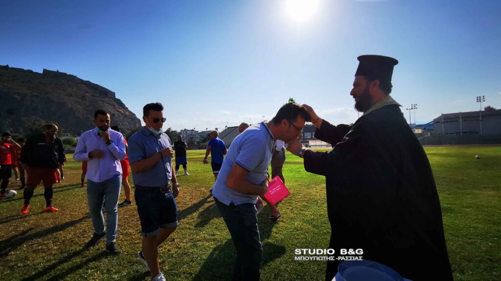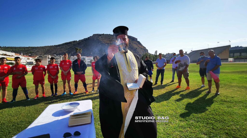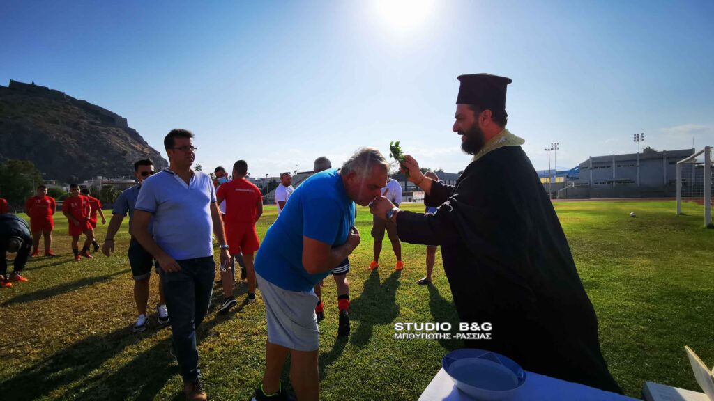 Αγιασμός στην τοπική ομάδα του Ναυπλίου ,τον Πανναυπλιακό , πραγματοποιήθηκε παρουσία των παικτών και των παραγόντων της ομάδας του Ναυπλίου, Πέμπτη 16 Σεπτεμβρίου 2021. Ο ιερέας, π. Κωνσταντίνος Σέρρος, τέλεσε τον αγιασμό της ποδοσφαιρικής ομάδας του μεγάλου και ιστορικού Πανναυπλιακού και στο τέλος σκόραρε με εκτέλεση πέναλτι, πανηγυρίζοντας δεόντως για το καλό της νέας ποδοσφαιρικής χρονιάς στο τοπικό πρωτάθλημα που θα παίζει η ομάδα. Ο αγιασμός ενόψει της νέας περιόδου τελέστηκε στο Δημοτικό Αθλητικό Κέντρο Ναυπλίου ,παρουσία του προέδρου της ομάδας Ευαγγέλου Ταχτσίδης ,αδελφός του Παναγιώτη Ταχτσίδη διεθνή παίχτη που τώρα παίζει στην Αραβική ομάδα ,Αλ Φάιχα.