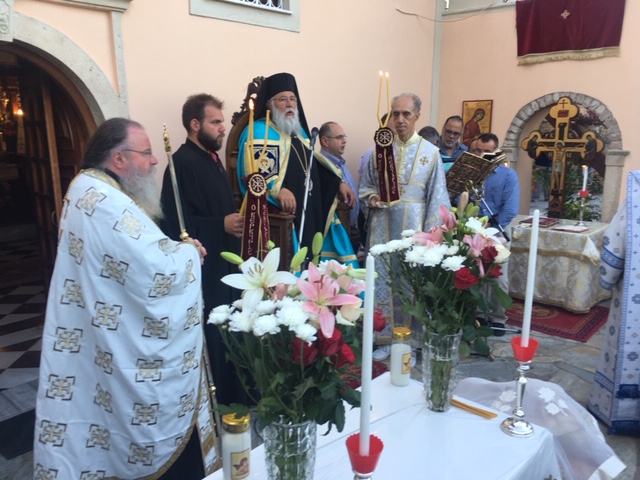 Στον Εσπερινό που τελέστηκε στο πανηγυρίζον Ιερό Ησυχαστήριο της Αγίας Παρασκευής Κοινοπιαστών Κέρκυρας χοροστάτησε ο Σεβασμιώτατος Μητροπολίτης Κερκύρας, Παξών και Διαποντίων Νήσων κ. Νεκτάριος.