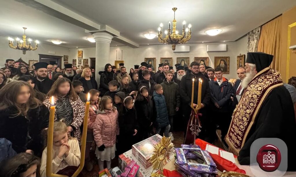 Ο Μητροπολίτης κ. Άνθιμος ευλόγησε την πίτα, ενώ το Επισκοπείο ήταν κατάμεστο από ιερείς, ψάλτες και λαϊκούς συνεργάτες, οι οποίοι ήρθαν με τις οικογένειές τους για να προσευχηθούν για τη νέα χρονιά.