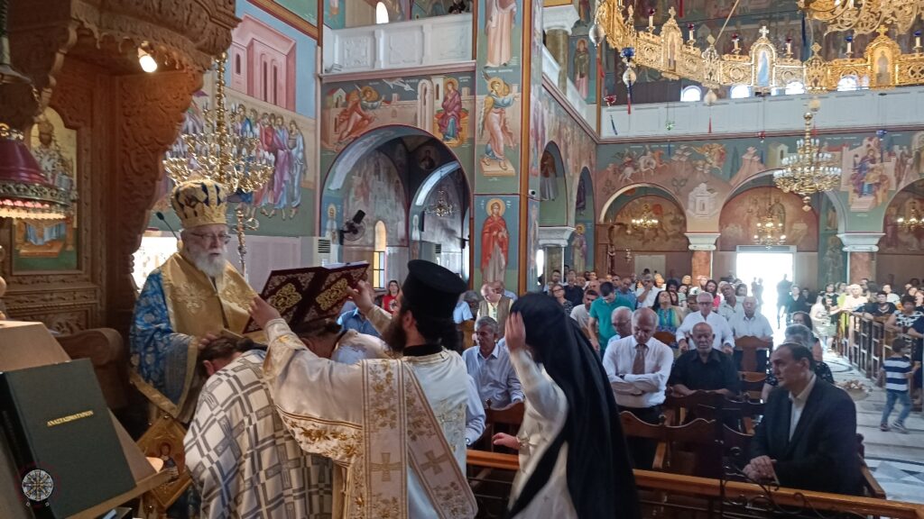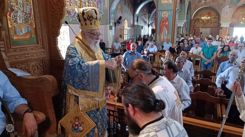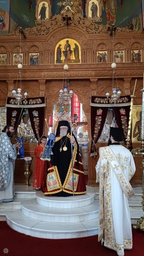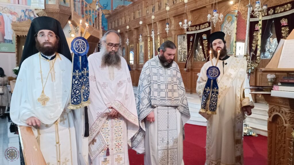 Πριν το πέρας της Θείας Λειτουργίας ο Πανιερώτατος απένειμε το οφίκιο του Πρωτοπρεσβυτέρου στους εφημερίους του ιερού ναού Οικονόμο Ανδρέα και Πρεσβύτερο Πολύβιο, απευθύνοντας πατρικές νουθεσίες για τη διακονία του λαού του Θεού και εκφράζοντας τις ευχαριστίες του για το επιτελούμενο έργο το οποίο διαπιστώνει να επιτελείται στις ενορίες της Μητροπόλεώς μας, την αθρόα προσέλευση των πιστών στις ιερές ακολουθίες παρά τις δυσκολίες που διερχόμαστε το τελευταίο διάστημα.