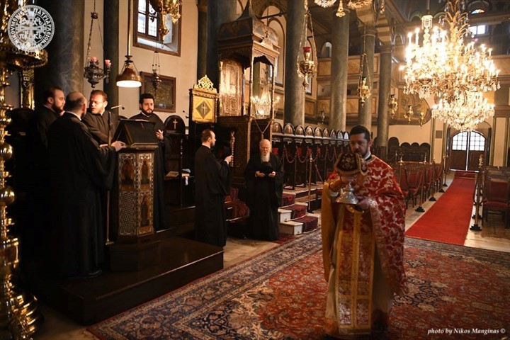 O Οικουμενικός Πατριάρχης Βαρθολομαίος χοροστάτησε σήμερα, Κυριακή, 5 Απριλίου 2020, στην Θεία Λειτουργία για την Κυριακή Ε’ των Νηστειών, η οποία τελέστηκε στον Πάνσεπτο Πατριαρχικό Ναό.