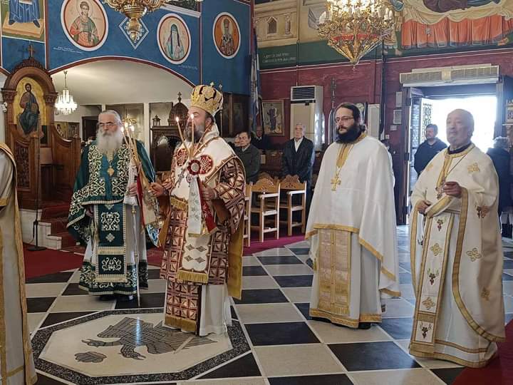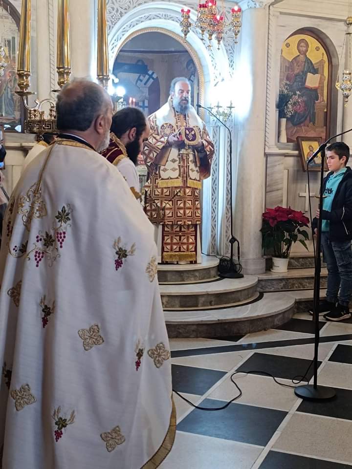 Ο Σεβασμιώτατος Μητροπολίτης Θήρας Αμοργού και Νήσων κ. Αμφιλόχιος την Κυριακή 28 Ιανουαρίου χοροστάτησε του όρθρου και τέλεσε το μυστήριο της θείας Λειτουργίας στον Ιερό Ναό Παναγίας Μυρτιδιωυίσσης στο Καμάρι της Σαντορίνης.Την διακονία του κηρύγματος ανέλαβε ο πανοσιολογιώτατος αρχιμανδρίτης π. Πολύκαρπος Μπόγρης, Γραμματέας της Συνοδικής Επιτροπής επί της Χριστιανικής Αγωγής και Νεότητας, ο οποίος έχει προσκληθεί στην Μητρόπολη προκειμένου να συμμετάσχει στις εορταστικές εκδηλώσεις που διοργανώνει το γραφείο Νεότητας προς τιμήν των Τριών Ιεραρχών, αναφερόμενος στην ευαγγελική περικοπή.Το ιερό αναλόγιο διηκόνησαν ο Διευθυντής της Σχολής Βυζαντινής Μουσικής της Ιεράς Μητροπόλεως κ. Ευτύχιος Μαρκοζάννες, οι ιεροψάλτες της Ενορίας, και μαθητές της Σχολής.