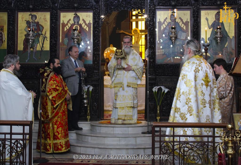 Την Κυριακή της Ορθοδοξίας, 5 Μαρτίου 2023, το πρωΐ, στον Μητροπολιτικό Ιερό Ναό του Αγίου Δημητρίου στην Άρτα, ελειτούργησε ο Σεβασμιώτατος Μητροπολίτης Άρτης κ. Καλλίνικος.
