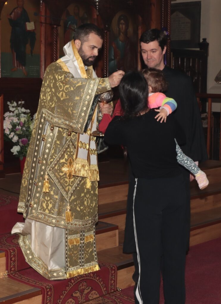 Συλλειτούργησε ο ιερατικώς Προϊστάμενος του Ι. Ναού, Πρωτοπρεσβύτερος κ. Ιωακείμ Ουρεϊλίδης.
