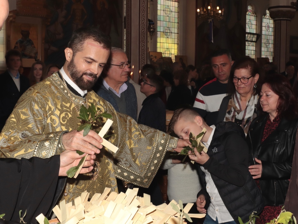 Ο Θεοφιλέστατος μίλησε σχετικά με την μεγάλη εορτή της ημέρας και την προετοιμασία των πιστών για το Πάσχα, ευλόγησε τα βάια των φοινίκων και τα διένειμε στους πιστούς.
