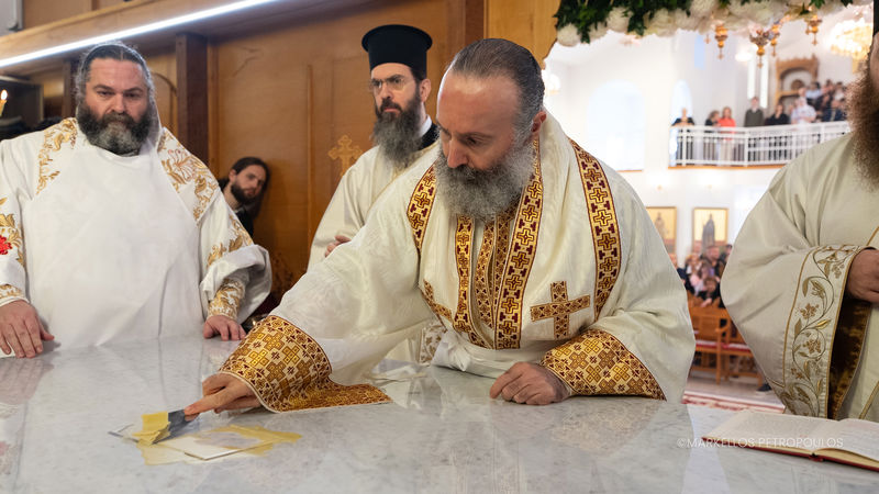 Όπως ορίζει το Τυπικό της Εκκλησίας μας, μετά το πέρας του Όρθρου, ανεγνώσθησαν καθαγιαστικές ευχές και ακολούθησε η λιτάνευση των ιερών λειψάνων τρεις φορές πέριξ του Ναού, με επικεφαλής τον Σεβασμιώτατο. Με την προσταγή «Ἄρατε πύλας, οἱ ἄρχοντες ὑμῶν, καὶ ἐπάρθητε, πύλαι αἰώνιοι, καὶ εἰσελεύσεται ὁ Βασιλεὺς τῆς δόξης» (Ψαλμός 23. Ψαλμὸς τῷ Δαυΐδ· τῆς μιᾶς Σαββάτων), άνοιξαν οι θύρες του Ι. Ναού και έγινε η θριαμβευτική είσοδος των Αρχιερέων, του Κλήρου και του Λαού, για να ακολουθήσει η τοποθέτηση των ιερών λειψάνων στο κέντρο της Αγίας Τραπέζης, στο «φυτόν». Ο Αρχιεπίσκοπος, αφού σφράγισε το «φυτόν», ανέγνωσε γονατιστός ειδική ευχή, δεόμενος για την κάθοδο του Παναγίου Πνεύματος και τον καθαγιασμό του Ι. Ναού. Έπειτα, έγινε η έκπλυση και το μύρωμα της Αγίας Τραπέζης, ο καθαγιασμός των αντιμηνσίων και, στο τέλος, η ένδυση και ο ευπρεπισμός της Αγίας Τραπέζης. Προ του πέρατος της Ακολουθίας, στους τοίχους του Ι. Ναού σχηματίστηκε με Άγιο Μύρο το μονόγραμμα του Χριστού και ο Αρχιεπίσκοπος άναψε την ακοίμητη κανδήλα της Αγίας Τραπέζης. Με βαθειά ευλάβεια παρακολουθούσαν τα τελούμενα οι εκατοντάδες πιστοί που είχαν κατακλύσει τον πανηγυρίζοντα Ι. Ναό, καθώς κατανυκτικοί ύμνοι εψάλλοντο από νέους της Χριστιανικής Ενώσεως του Σύδνεϋ.
