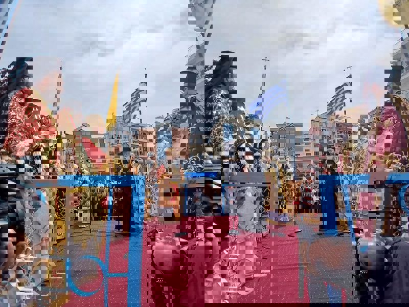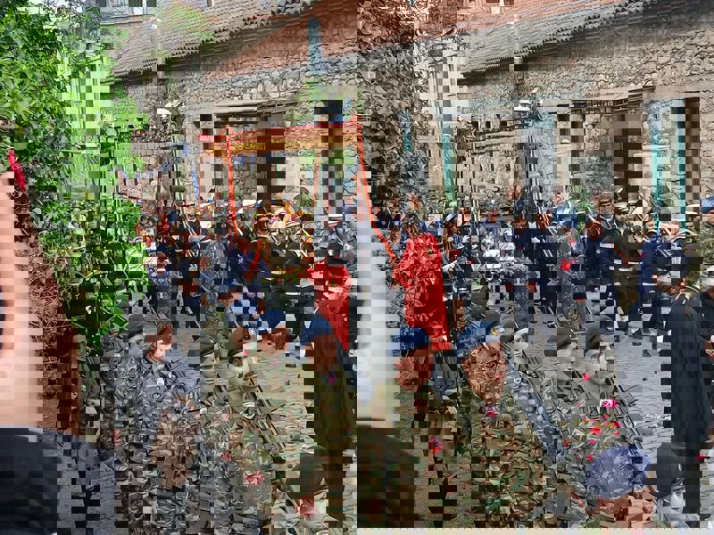 Στην πλατεία ανεπέμφθη Δέηση και κατόπιν ομίλησε ο Σεβασμιώτατος Μητροπολίτης Νέας Ιωνίας, Φιλαδελφείας, Ηρακλείου και Χαλκηδόνος κ. Γαβριήλ, ο οποίος αναφέρθηκε στο γεγονός της Αναστάσεως ως θεμέλιο της ζωής της Εκκλησίας και τόνισε τον εξέχοντα ρόλο της Υπεραγίας Θεοτόκου στο έργο της σωτηρίας, υπογραμμίζοντας ότι η χάρις Της παραμένει αστείρευτη πηγή ελπίδος και παρηγορίας για κάθε πιστό.