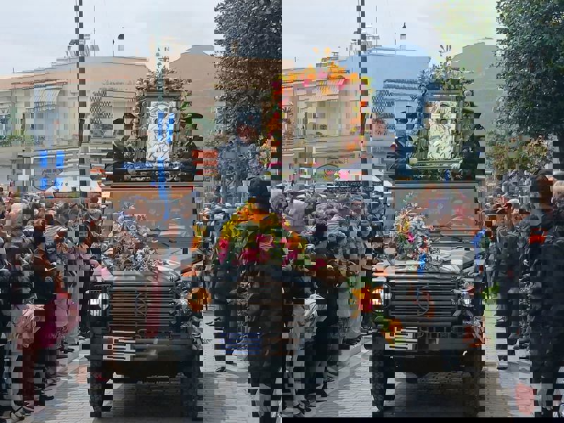 Μετά το πέρας της Δεήσεως και των ομιλιών, η Ιερά Εικόνα τοποθετήθηκε σε ειδικώς διαμορφωμένο όχημα και περιήλθε κεντρικές οδούς της πόλεως του Αιγίου, προτού επιστρέψει στο Ιερό Προσκύνημα.