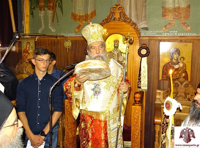 Το απόγευμα της παραμονής τελέσθηκε ο πανηγυρικός Αρχιερατικός Εσπερινός μετ” αρτοκλασίας χοροστατούντος του Σεβασμιωτάτου Επισκόπου Βρεσθένης και πρώην Μητροπολίτη Θεσσαλιώτιδος κ. Θεοκλήτου, ο οποίος επισκέφθηκε την Ιερά Μητρόπολή μας, ως προσκεκλημένος του Σεβ. Μητροπολίτη μας κ. Ευσταθίου. Ανήμερα της εορτής, ο Σεβασμιώτατος κ. Θεόκλητος τέλεσε τη Θεία Λειτουργία στην πανηγυρίσασα Ενορία Βρεσθένης, μιας και ο ίδιος φέρει τον τίτλο της ιστορικής ομώνυμης Επισκοπής.