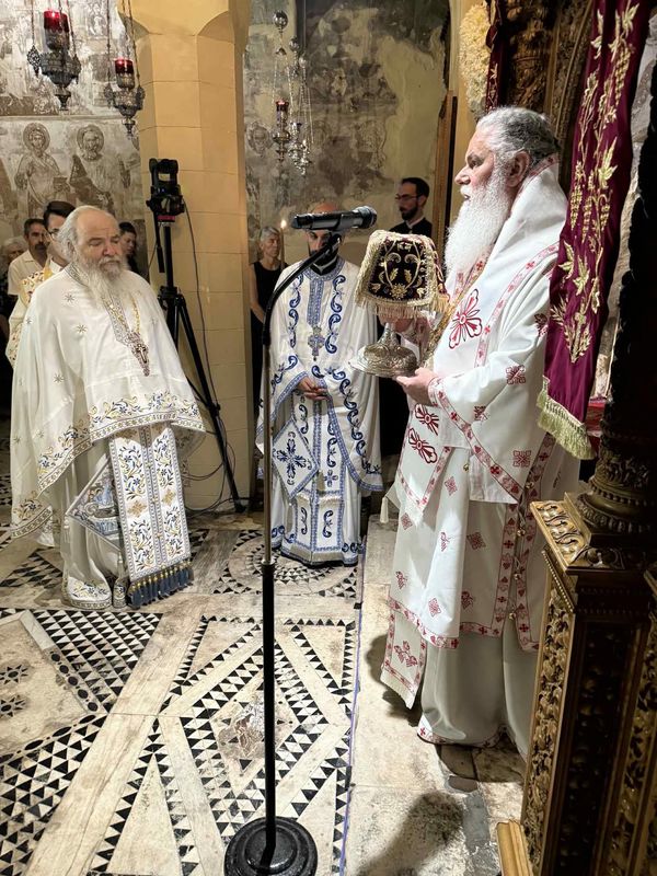 Τον πανηγυρικό λόγο της κυριωνύμου ημέρας εκφώνησε ο Σεβασμιώτατος Μητροπολίτης Αρκαλοχωρίου, Καστελλίου και Βιάννου κ. Ανδρέας, ο οποίος ανέπτυξε θεολογικά την υμνολογική φράση: “Μετέστης πρὸς τὴν ζωήν, Μήτηρ ὑπάρχουσα τῆς ζωῆς”, αναλύοντας το μυστήριο της Κοιμήσεως ως μετάσταση προς την αιώνια ζωή, μέσα στο φως της Αναστάσεως του Χριστού.