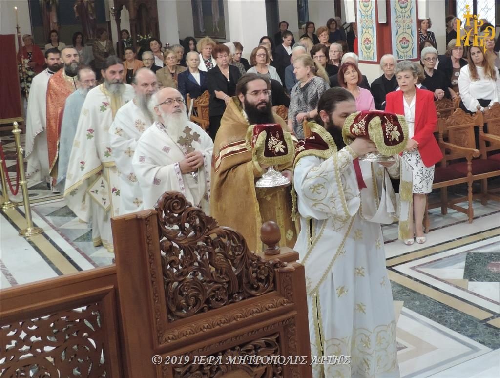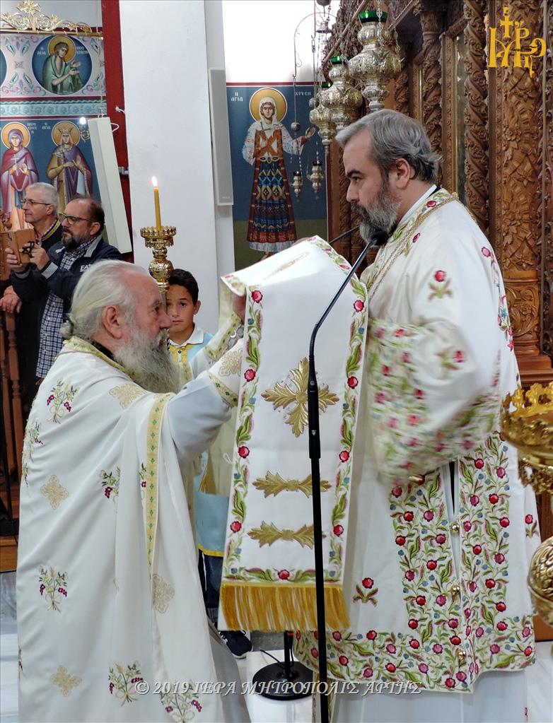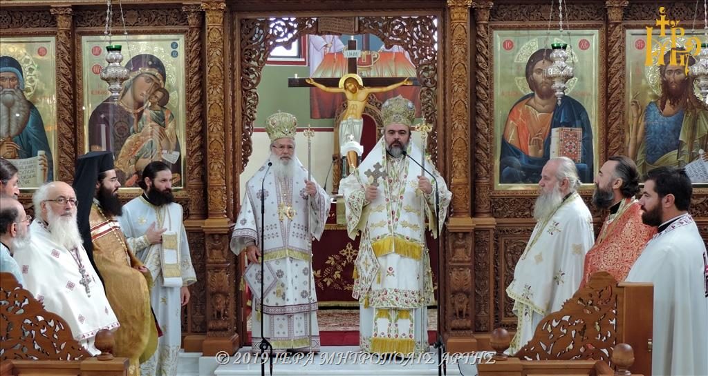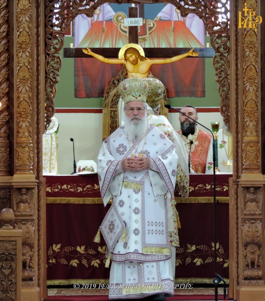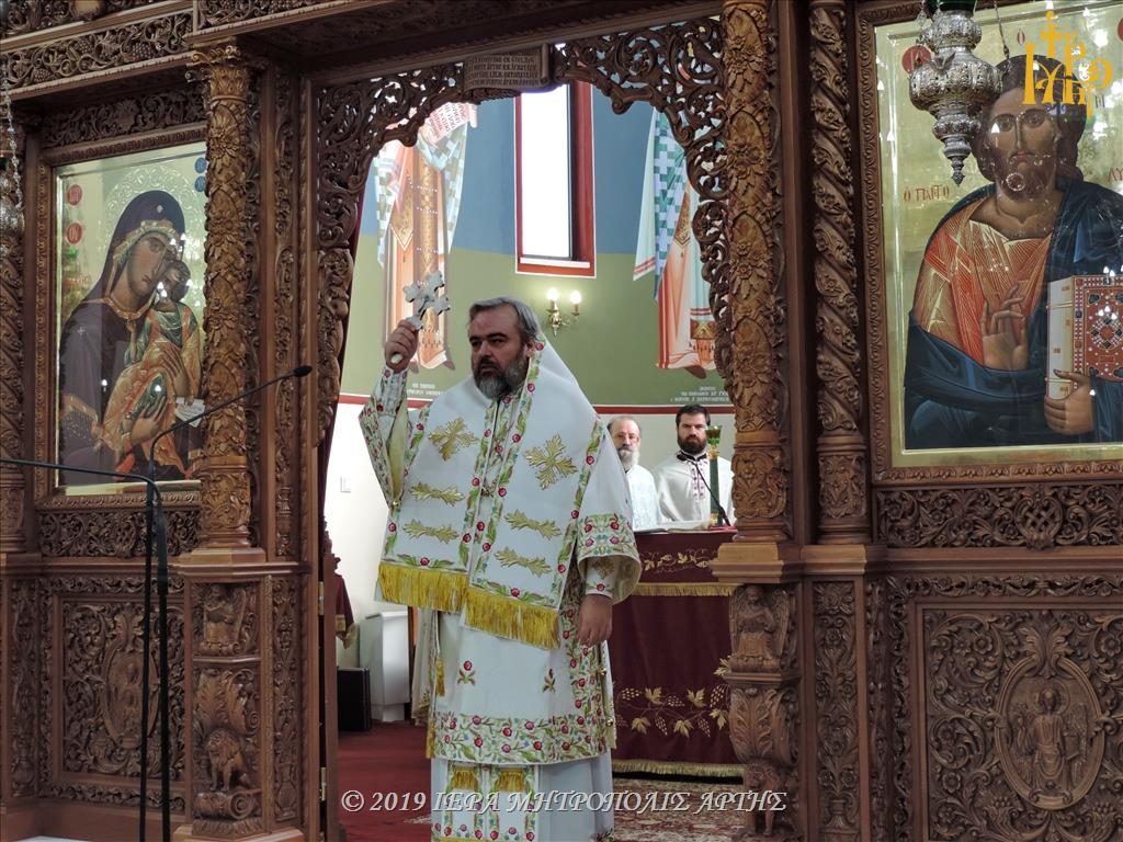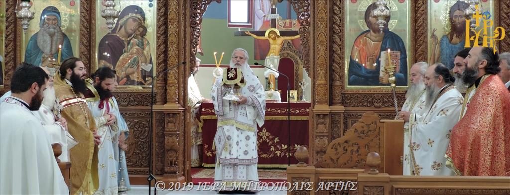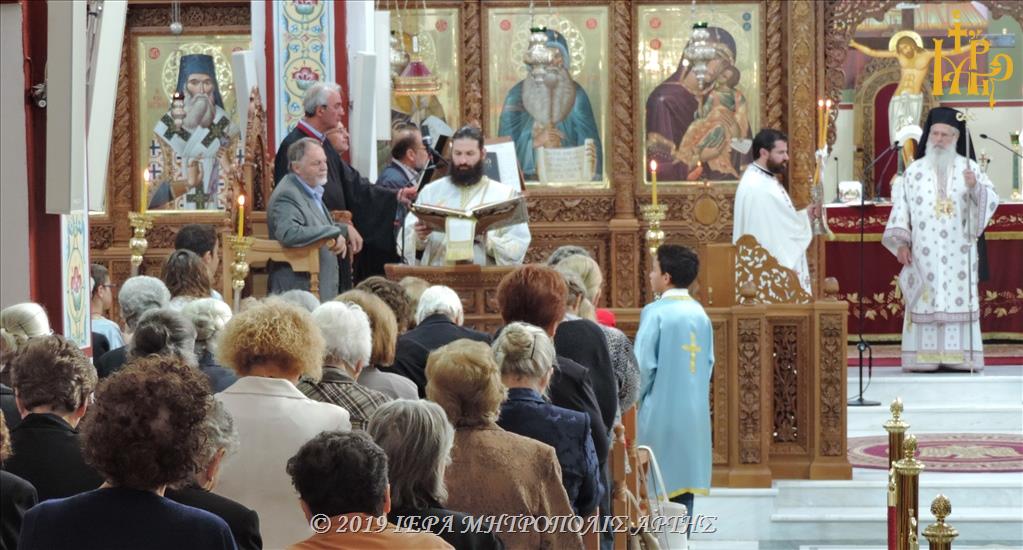 Την Πανηγυρική Θεία Λειτουργία, στον ομώνυμο εορτάζοντα Ιερό Ναό, ετέλεσε ο Σεβασμιώτατος Μητροπολίτης Σμύρνης κ. Βαρθολομαίος, συλλειτουργούντος του Σεβασμιωτάτου Μητροπολίτου πρώην Άρτης κ. Ιγνατίου.