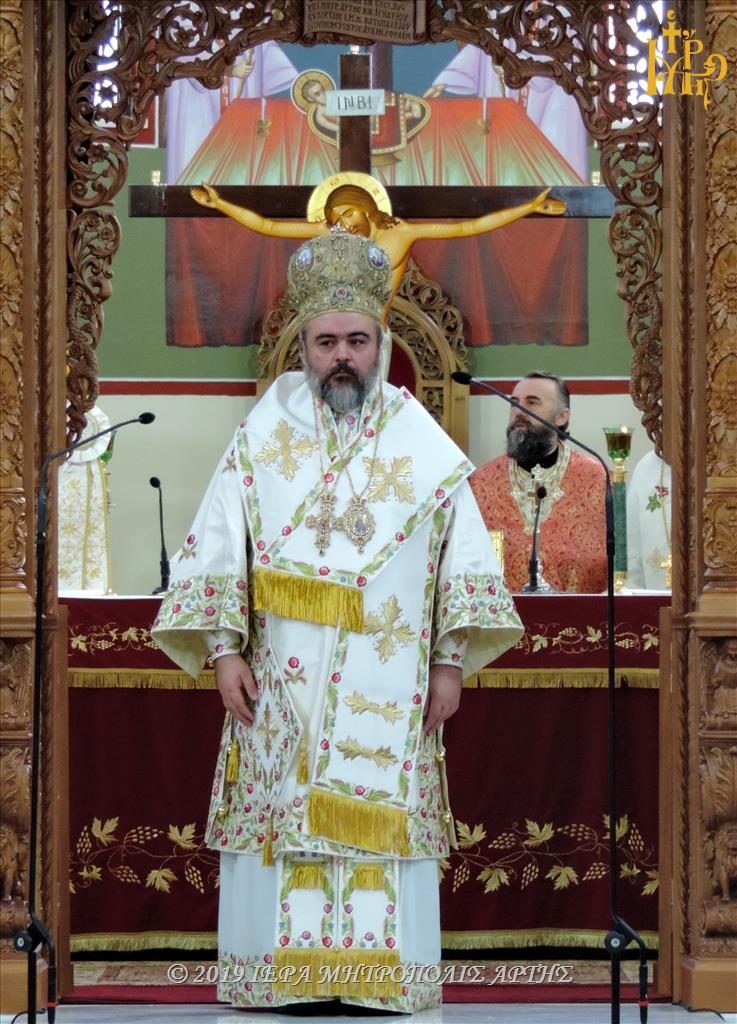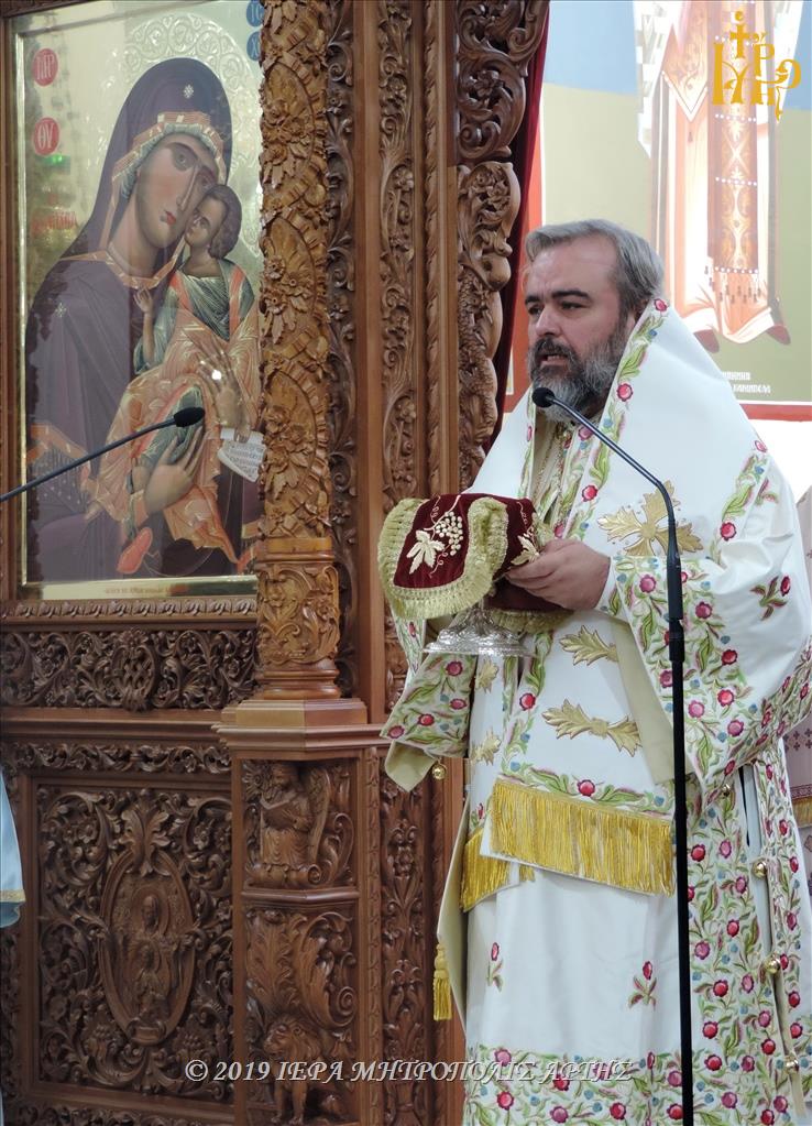 Ο Μητροπολίτης Σμύρνης στο κήρυγμά του, αναφέρθηκε στην προσωπικότητα αλλά και την προσφορά του εορτάζοντος Αγίου, καλώντας ταυτόχρονα τους πιστούς να ακολουθήσουν το παράδειγμά του. Συνάμα ευχαρίστησε αδελφικώς τον Μητροπολίτη Άρτης κ. Καλλίνικο για την άκρως τιμητική πρόσκλησή του, να συμμετάσχει της Ιεράς Πανηγύρεως.