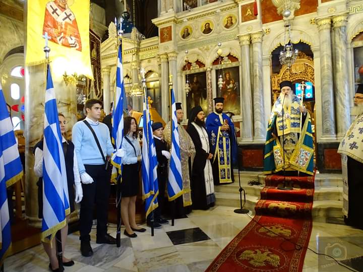 Ο Σεβασμιώτατος Μητροπολίτης Σάμου κ Ευσέβιος στο τέλος της Θείας Λειτουργίας σε ομιλία του αναφέρθηκε στην καθιέρωση της εορτής της Αγίας Σκέπης, μεταξύ άλλων επεσήμανε ότι ο λαός τον Οκτώβριο του 1940 υπερβαίνοντας διχασμούς ξεσηκώθηκε με ευλογημένη σύμπνοια πιστεύοντας ότι η υπέρμαχος Στρατηγός η Παναγία, ας ηγείται του αμυντικού αγώνα του Έθνους υπέρ της ελευθερίας και της αξιοπρέπειας, τόνισε ότι τότε οι Έλληνες είπαν ένα βροντερό ΟΧΙ που δόξασε την Ελλάδα σήμερα οι καιροί απαιτούν από όλους τους ακρίτες και νησιώτες κυρίως από μας τους Σαμιώτες να βροντο-φωνάξουμε ένα νέο ΟΧΙ στην αλλοίωση μας την θρησκευτική, την εθνική, την πληθυσμιακή.