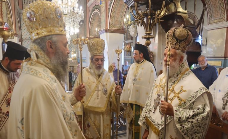 Με τέλεση στον Ιερό Μητροπολιτικό Ναό του Αγίου Σπυρίδωνος Σίφνου Τρισαρχιερατικής Θείας Λειτουργίας, προεξάρχοντος του Σεβασμιωτάτου Μητροπολίτου Σιδηροκάστρου κ. Μακαρίου, συνιερουργούντων δ’ αυτώ των Σεβασμιωτάτων Μητροπολιτών Φλωρίνης κ. Ειρηναίου και Σύρου- Σίφνου κ. Δωροθέου Β΄, η Σίφνος εόρτασε πανδήμως τη Δεσποτική Εορτή της Αναλήψεως του Κυρίου και την τοπική Θεομητορική εορτή της Παναγίας Χρυσοπηγής, σε ανάμνηση των προς την νήσο Σίφνο και τους κατοίκους της θαυμασίων της Θεοτόκου, της διασωσάσης αυτούς εκ νόσου λοιμικής,με τη λειτουργική συμμετοχή του Ηγουμένου της Ιεράς Μονής Βρύσεως Αρχιμ. Ιωαννικίου, Εφημερίων της Σίφνου, του Ηγουμένου της Ιεράς Μονής Τουρλιανής, Αρχιμ. Αλεξίου Παπαδόπουλου μετά του Διακόνου Φιλαρέτου Αδαμίδη, του Αρχιερατικού Επιτρόπου Μυκόνου & Δήλου, Πρωτοπρ. Πέτρου Μαραγκού, και του Προϊσταμένου του Ιερού Καθεδρικού Ναού Αγίου Νικολάου Ερμουπόλεως, Αρχιμ. Βενεδίκτου Φραγκογιάννη, του συνοδεύοντος τον Σεβασμιώτατο Μητροπολίτη Φλωρίνης, Πρωτοπρ. Ευαγγέλου και των δύο Διακόνων του Σεβασμιωτάτου Μητροπολίτου Σιδηροκάστρου, και την παρουσία του Βουλευτού Κυκλάδων κ. Φιλ. Φόρτωμα, των τα πρώτα φερόντων στη νήσο, την Περιφέρεια και το Δήμο, ως και εχθές, του Αρχηγού του Λιμενικού Σώματος και διατελεσάντων Αρχηγών, της Προέδρου της ΜΚΥΟ Νάξου «ΚΙΝΗΜΑ», εκπροσώπων τοπικών φορέων και οργανώσεων, Εκπαιδευτικών και Μαθητών όλων των σχολείων της νήσου με τις σημαίες τους και νεανίδων του Πολιτιστικού Συλλόγου Σίφνου με παραδοσιακές στολές και πλήθους πιστών.