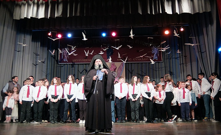 Ὁ Σεβασμιώτατος συνεχάρη τά παιδιά καί ὅλους ὅσοι ἐργάστηκαν καί κοπίασαν γι’ αὐτή τήν ὄμορφη γιορτή. Στό τέλος μοίρασε σέ ὅλα τά παιδιά ἀπό μιά εἰκόνα τοῦ Ἰησοῦ Χριστοῦ ἔνθρονου.