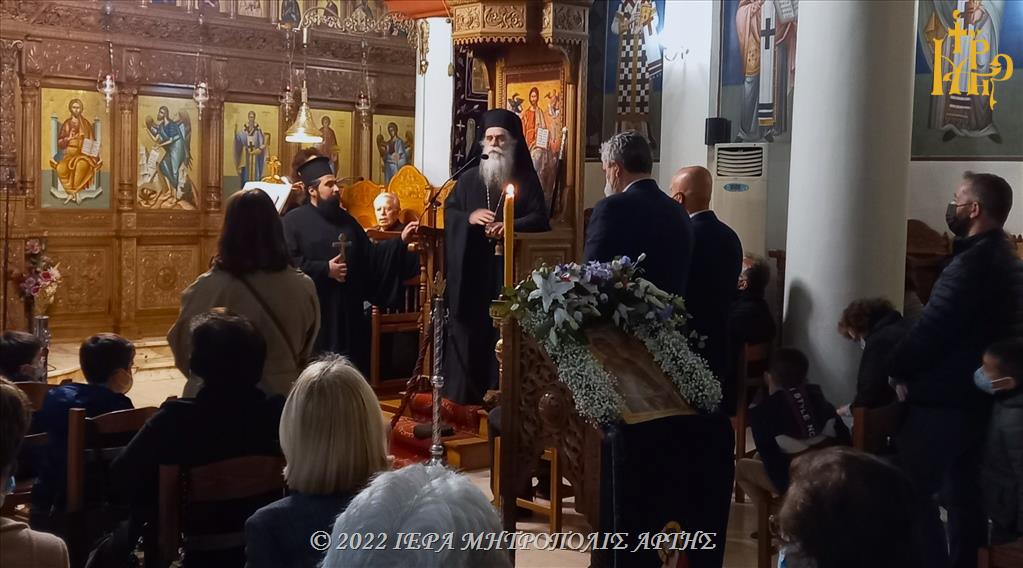 Την Μεγάλη Τρίτη, 19 Απριλίου 2022, το εσπέρας, στην ενορία Παμμεγίστων Ταξιαρχών της πόλεως Άρτης, ο Σεβασμιώτατος Μητροπολίτης Άρτης κ. Καλλίνικος χοροστάτησε στην Ακολουθία του Νυμφίου.