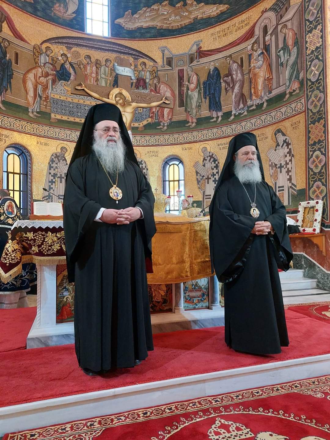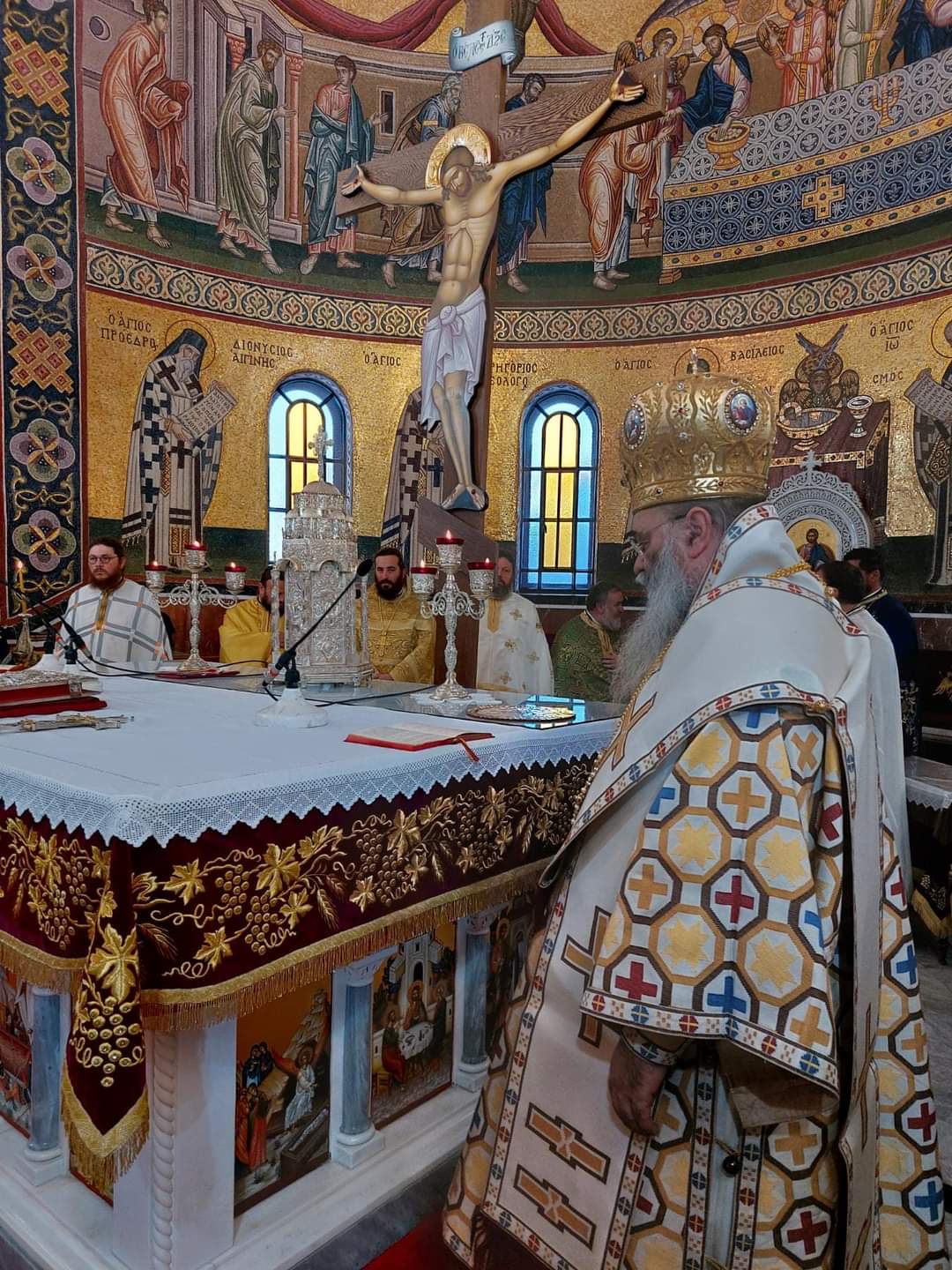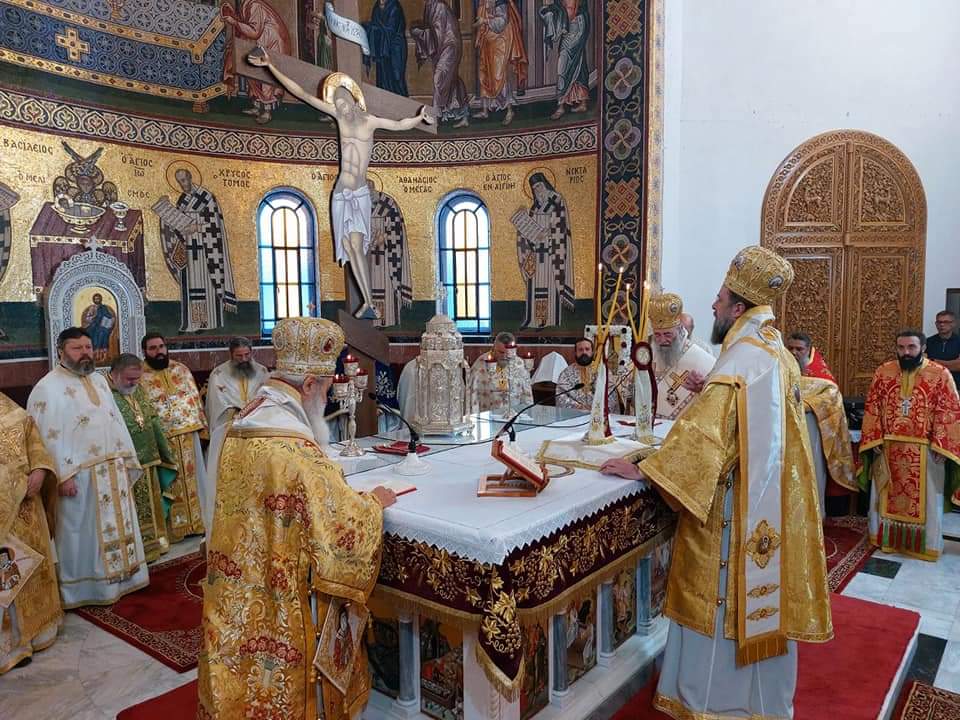 Με ιδιαίτερη λαμπρότητα και κατάνυξη τελέστηκε το Σάββατο 9η Νοεμβρίου Τρισαρχιερατική Θ. Λειτουργία στον παμμεγέθη Ι. Ναό του Αγίου Νεκταρίου Αιγίνης, προεξάρχοντος και ομιλούντος του Σεβασμιωτάτου Μητροπολίτου Θεσσαλονίκης κ. ΦΙΛΟΘΕΟΥ, ενώ συλλειτούργησαν ο Σεβασμιώτατος Μητροπολίτης Δράμας κ. ΔΩΡΟΘΕΟΣ και ο Σεβασμιώτατος Ποιμενάρχης κ. ΕΦΡΑΙΜ.