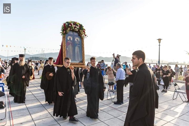 Με την δέουσα λαμπρότητα, αλλά και με τους περιορισμούς που επιβάλουν τα ισχύοντα μέτρα, για την προστασία της δημόσιας υγείας, πραγματοποιήθηκε φέτος η μεγάλη πανήγυρις των Αγίων Κωνσταντίνου και Ελένης, στον περικαλλή ομώνυμο Ιερό Ναό του Βόλου.
