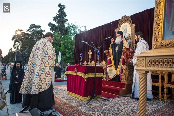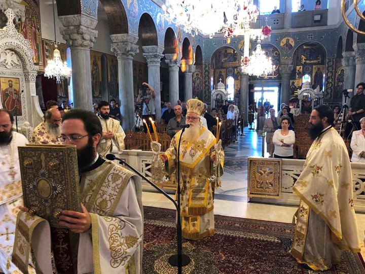 Ο Μέγας Πανηγυρικός Εσπερινός τελέστηκε στο προαύλιο του Ναού, χοροστατούντος του Σεβ. Μητροπολίτου Δημητριάδος κ. Ιγνατίου, παρουσία της Βουλευτού Μαγνησίας κ. Ζέττας Μακρή, εκπροσώπων των Αρχών και πλήθους συντεταγμένων πιστών.