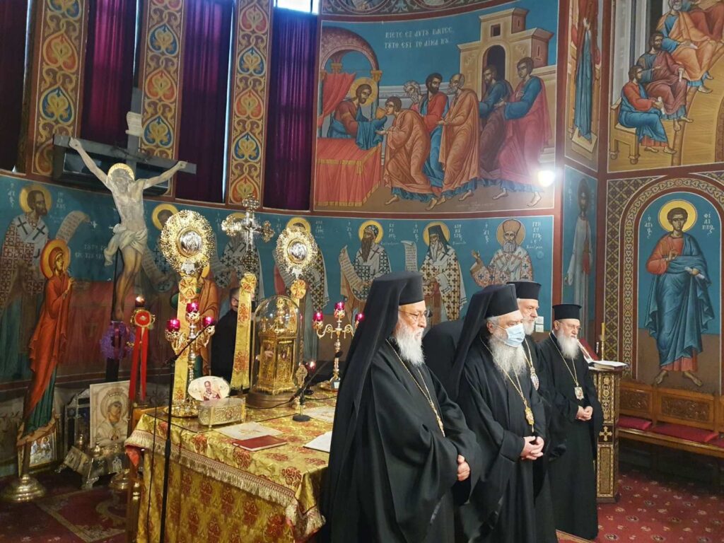 Στήν Ἀκολουθία τοῦ Ὄρθρυ χοροστάτησε ὁ Σεβασμιώτατος Μητροπολίτης Μεσσηνίας κ. Χρυσόστομος, στή δέ  Θεία Λειτουργία προέστη ὁ Σεβασμιώτατος Μητροπολίτης Μαντινείας καί Κυνουρίας κ. Ἀλέξανδρος, συλλειτουργούντων τῶν Σεβασμιωτάτων  Μητροπολιτῶν Μονεμβασίας καί Σπάρτης κ. Εὐσταθίου, Σύρου κ. Δωροθέου, Κορίνθου κ. Διονυσίου καί Μεσσηνίας κ. Χρυσοστόμου.
