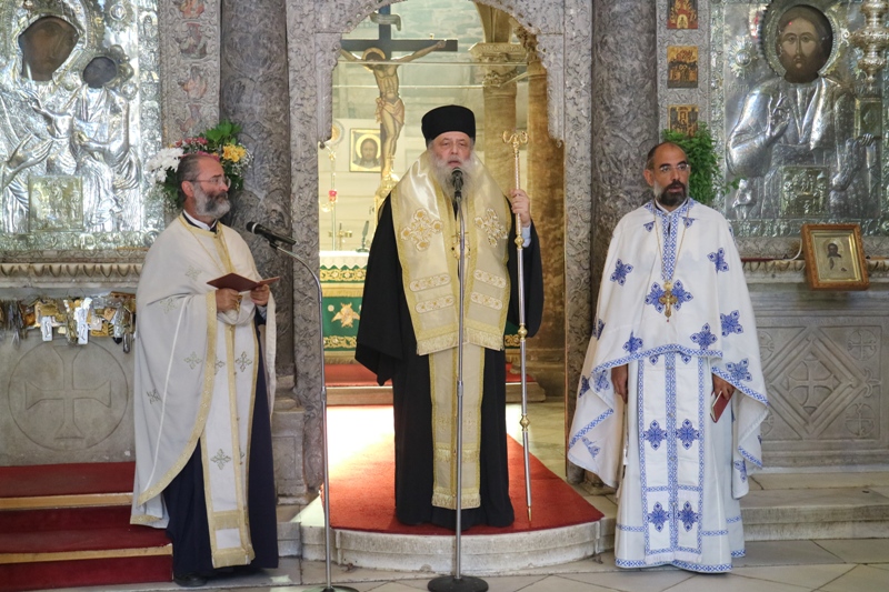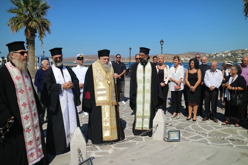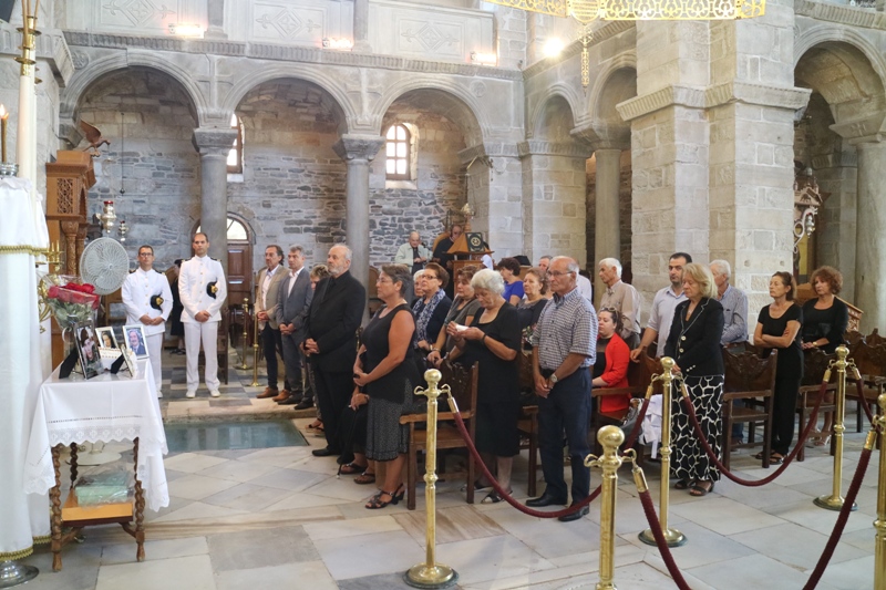 Στο τέλος της Θείας Λειτουργίας τέλεσε το Μνημόσυνο των 81 συνανθρώπων μας που έχασαν την ζωή τους στην ναυτική τραγωδία του «Eξπρές Σαμίνα» (26-9-2000) και ευχήθηκε ο Κύριος μας να τους αναπαύει “εν σκηναίς δικαίων και αγίων“, να χαρίζει δε στους πονεμένους συγγενείς και οικείους τους την εξ Ύψους παρηγορίαν.