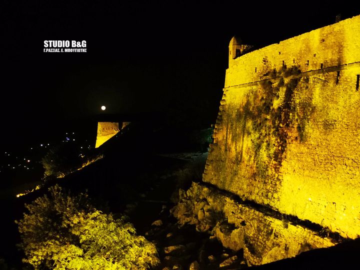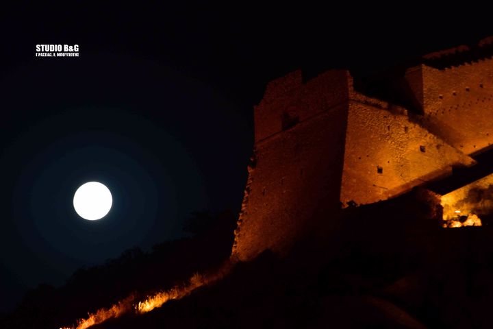 Το φεγγάρι του Σεπτεμβρίου ή Πανσέληνος των ”φρούτων ” ανατέλλει ολόγιομο πάνω από την πόλη του Ναυπλίου, Τετάρτη 2 Σεπτεμβρίου 2020. Έτσι, το «Corn Moon», αναφέρεται στη συγκομιδή και στο αλώνισμα του καλαμποκιού, ενώ η αντίστοιχη ευρωπαϊκή ονομασία είναι το «Fruit Moon», δηλαδή η «πανσέληνος των φρούτων», που σηματοδοτεί και αυτή με τη σειρά της την ωρίμανση και τη συγκομιδή τους. H Πανσέληνος αυτή αποτελεί την ένατη Πανσέληνο του έτους από τις 13 συνολικά και την τελευταία του καλοκαιριού, καθώς η επόμενη πανσέληνος αναμένεται να πραγματοποιηθεί στις 2 Οκτωβρίου . Στα πλαίσια των εκδηλώσεων «Όλη η Ελλάδα ένας Πολιτισμός» του Υπουργείου Πολιτισμού και Αθλητισμού και λόγω της Πανσελήνου , διοργανώθηκε μουσική εκδήλωση από τη Λυρική σκηνή στο κάστρο Παλαμήδη. Η Εθνική Λυρική Σκηνή, γιορτάζοντας την συμπλήρωση 95 χρόνων από τη γέννηση του μεγάλου Έλληνα συνθέτη Μίκη Θεοδωράκη (1925), διοργανώνει σειρά συναυλιών προς τιμήν του.