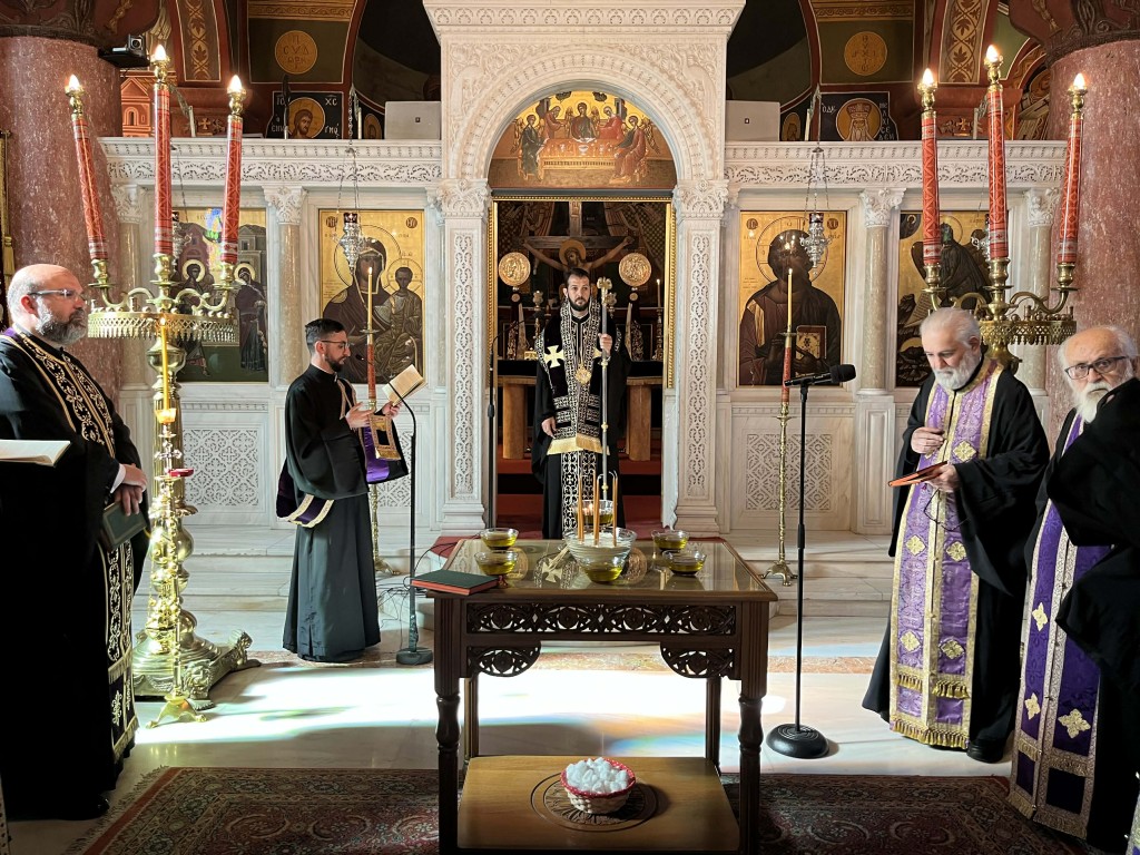 Ο Θεοφιλέστατος Επίσκοπος Ολύμπου κ. Κύριλλος τέλεσε το ιερό Ευχέλαιο το απόγευμα της Τετάρτης στον Καθεδρικό ιερό Ναό Ευαγγελισμού της Θεοτόκου.
