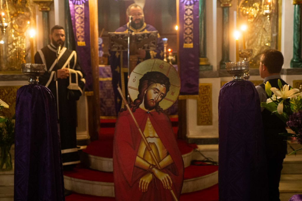 Στον Ιερό Ναό του Αγίου Παντελεήμονος Διαβολιτσίου μετέβη το εσπέρας της Μεγάλης Δευτέρας ο Σεβασμιώτατος Μητροπολίτης Μεσσηνίας κ. Χρυσόστομος και προέστη της Ακολουθίας του Νυμφίου. Τον Σεβασμιώτατο πλαισίωσαν ο εφημέριος του Ναού και Αρχιερατικός Επίτροπος Διαβολιτσίου Πρωτοπρεσβύτερος Κωνσταντίνος Ανδριόπουλος και ο Διάκονος Θεόφιλος Κυριάκος. Προ του πέρατος της Ακολουθίας ο Σεβασμιώτατος κηρύττοντας τον θείο λόγο αναφέρθηκε στον Νυμφίο Χριστό και στα μηνύματα που μας προβάλει δια Αυτού η Εκκλησία μας. Τέλος ευχαρίστησε για την τιμητική τους παρουσία τους Βουλευτές κ. Ιωάννη Λαμπρόπουλο και Περικλή Μαντά , την Δήμαρχο Οιχαλίας κ. Γιώτα Γεωργακοπούλου και τους παριστάμενους Πολιτευτές.