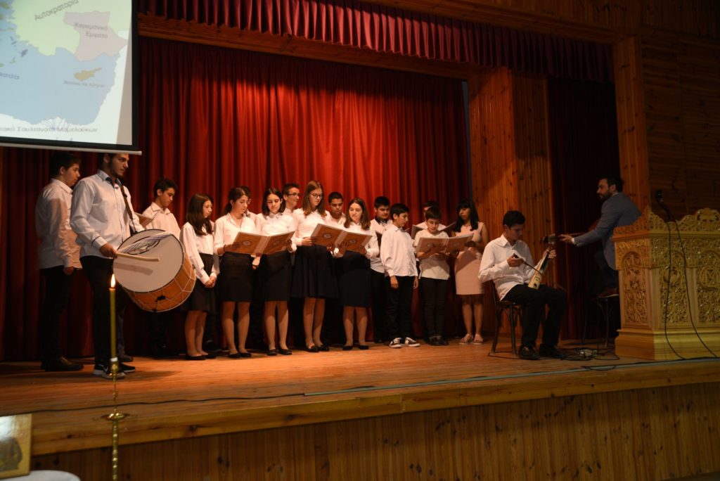 Κατσούλης και απέδωσαν άρτια οι μαθητές. Εντυπωσιακά συνόδευσε με την ποντιακή λύρα τη χορωδία του Σχολείου σε ποντιακό ακριτικό τραγούδι ο μαθητής της Α΄ Λυκείου Χρήστος Νατσαρίδης.