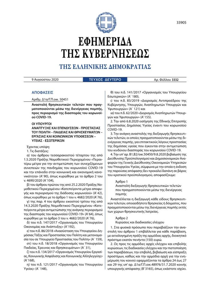 Αυτό είναι το ΦΕΚ που βάζει τέλος στις Ιερές Λιτανείες: