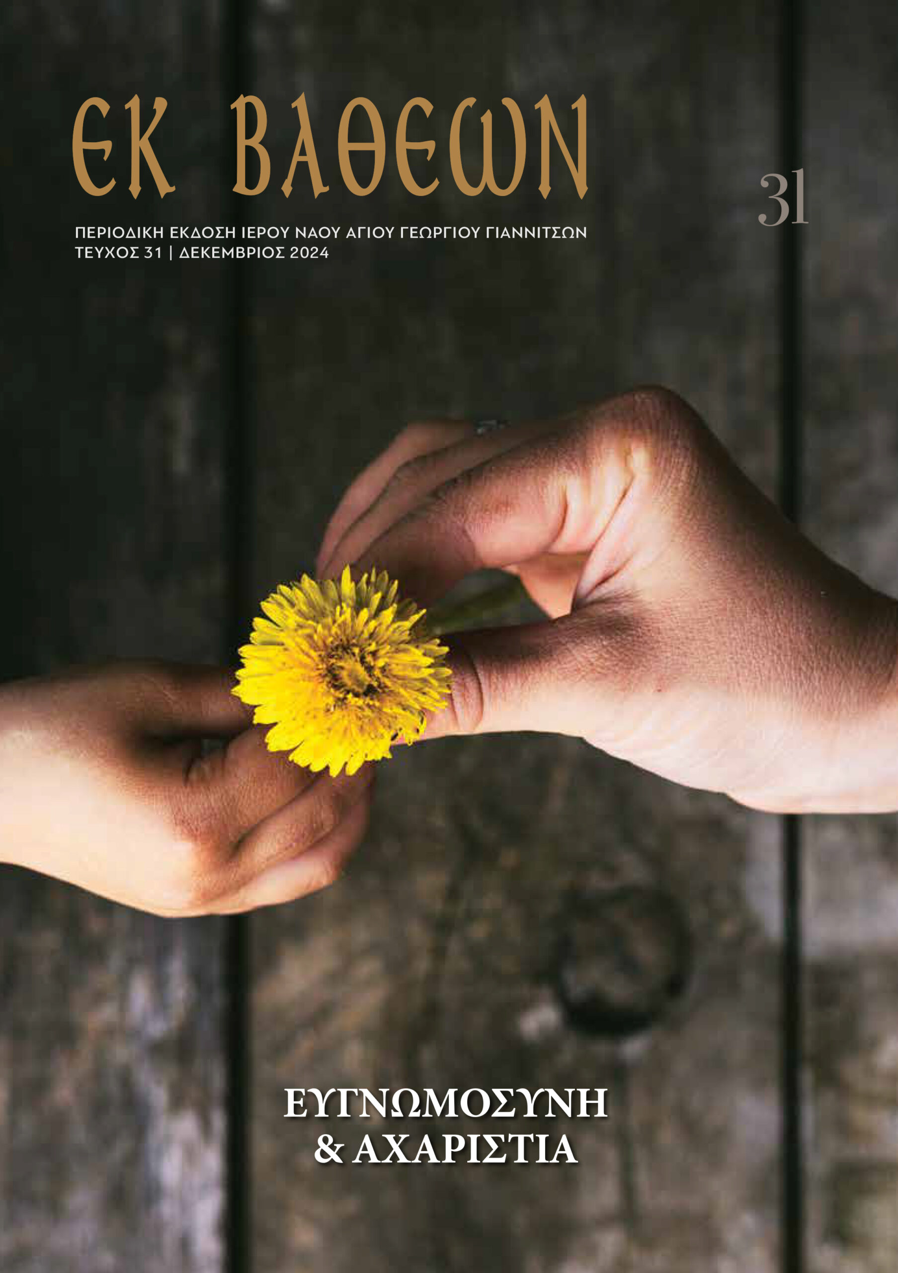 Εκδόθηκε από την ενορία Αγίου Γεωργίου Γιαννιτσών το 31o τεύχος του περιοδικού «Εκ Βαθέων», το οποίο εντάσσεται στις ποιμαντικές δραστηριότητες της Ιεράς Μητροπόλεως Εδέσσης, Πέλλης και Αλμωπίας.