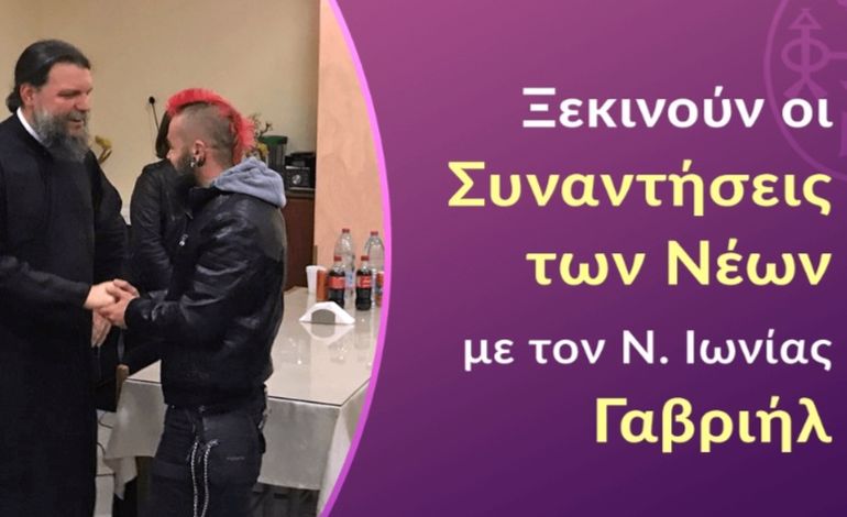 Ξεκινούν και πάλι οι συναντήσεις του Σεβασμιωτάτου Μητροπολίτου Νέας Ιωνίας, Φιλαδελφείας, Ηρακλείου και Χαλκηδόνος κ. Γαβριήλ με τις νέες και τους νέους της Ιεράς Μητροπόλεως. Τη Δευτέρα 10 Οκτωβρίου και ώρα 8:00μ.μ. στον Ιερό Ναό Αγίου Γεωργίου Νέας Ιωνίας θα πραγματοποιηθεί η πρώτη μεταξύ τους συνάντηση για την φετινή εκκλησιαστική περίοδο.