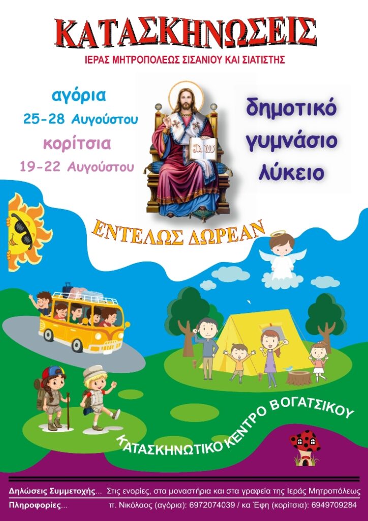 Η Ιερά Μητρόπολη Σισανίου και Σιατίστης, διοργανώνει φέτος κατασκήνωση στο κατασκηνωτικό κέντρο Βογατσικού.