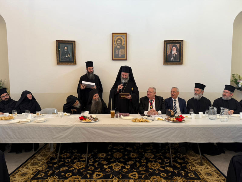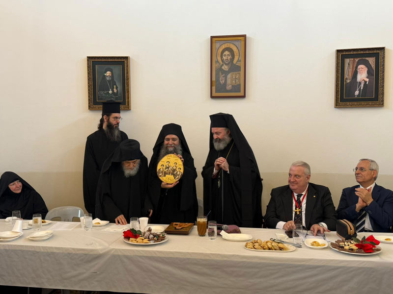 Μετά την υποδοχή, από τη φιλόξενη αδελφότητα της Μονής προσφέρθηκε εόρτιο κέρασμα, κατά τη διάρκεια του οποίου ο Αρχιεπίσκοπος είχε την ευκαιρία να προσφωνήσει καταλλήλως τον εορτάζοντα Προηγούμενο, ευχόμενος ο Θεός να του χαρίζει υγεία, δύναμη και μακροημέρευση, με τις πρεσβείες του προστάτου του, Αγίου Στεφάνου, και να καταθέσει τα ευγνώμονα αισθήματα τόσο του ιδίου προσωπικώς, όσο και των μελών της Ιεράς Επαρχιακής Συνόδου, των λοιπών συνεπισκόπων του, του ιερού Κλήρου και του φιλοχρίστου Λαού της Ιεράς Αρχιεπισκοπής Αυστραλίας.
