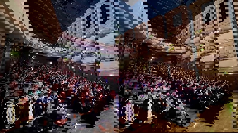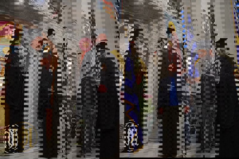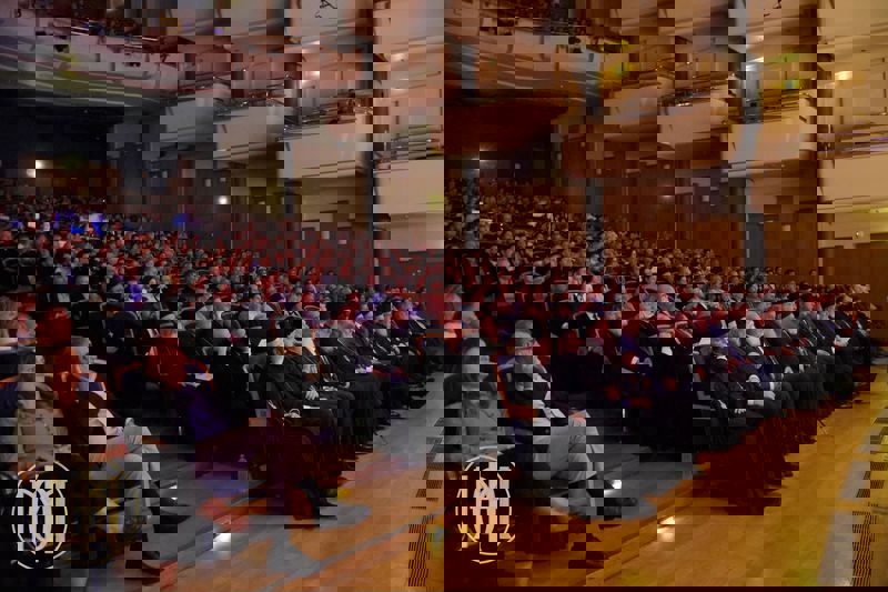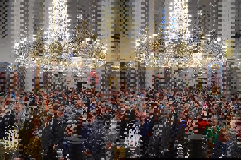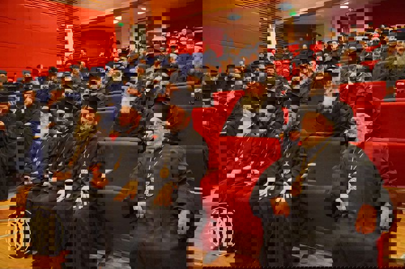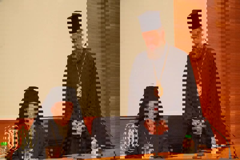 Αμέσως μετά, ο Παναγιώτατος καθώς και Προκαθήμενοι και εκπρόσωποι των Ορθοδόξων Εκκλησιών, Μητροπολίτες και πλήθος κόσμου, που κατέκλυσε την αίθουσα Φίλων Μουσικής, παρακολούθησαν μια μοναδική βραδιά πολιτισμού στο Μέγαρο Μουσικής Θεσσαλονίκης, πλημμυρισμένη από μουσικές και φωνές των Βαλκανίων, στη συναυλία «Μαζί, από τα Βαλκάνια για την Οικουμένη», η οποία πραγματοποιήθηκε στο πλαίσιο του Β΄ Διεθνούς Επιστημονικού Συνεδρίου του περιοδικού Θεολογία, με τη διοργάνωση της Ιεράς Συνόδου της Εκκλησίας της Ελλάδος, και την ευγενική χορηγία του Υπουργείου Εσωτερικών – Τομέας Μακεδονίας-Θράκης, του Υπουργείου Πολιτισμού, του Δήμου Θεσσαλονίκης – 60ά Δημήτρια 2025 και της Κρατικής Ορχήστρας Θεσσαλονίκης.