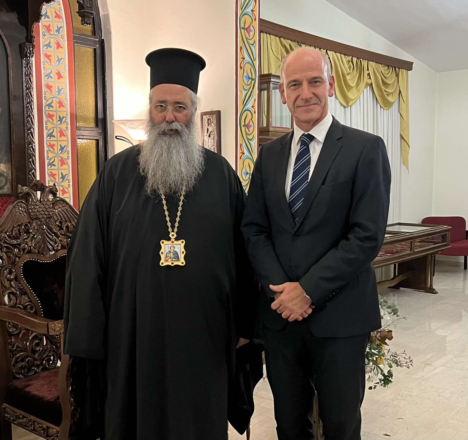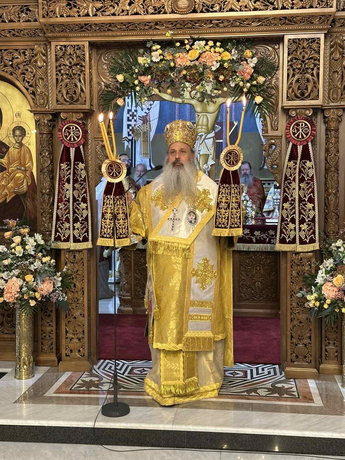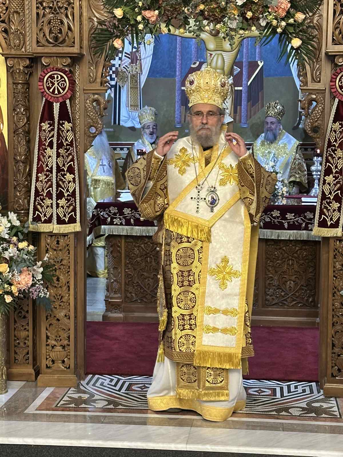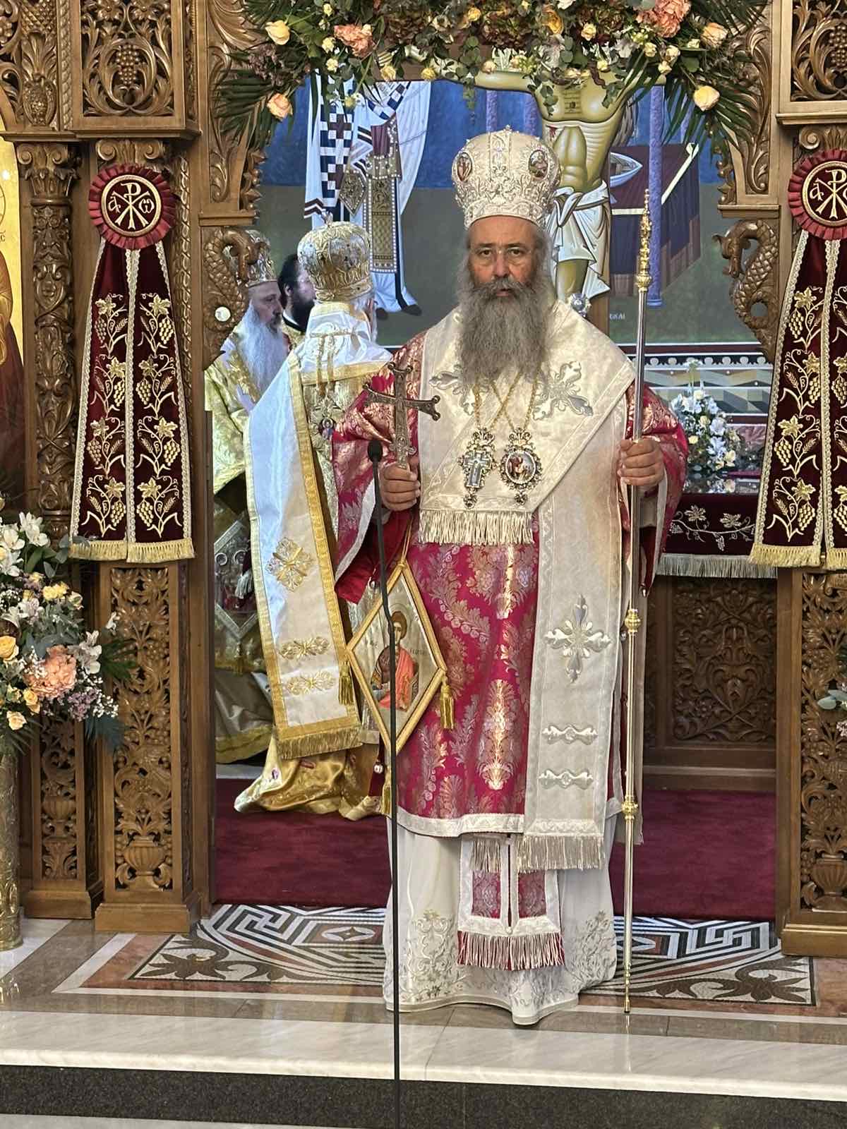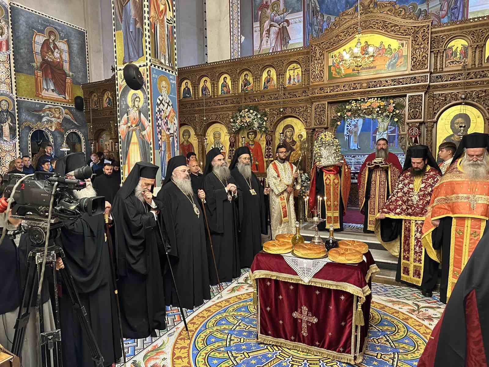 Μετά την απόλυση των ιερών ακολουθιών, τόσο του Πανηγυρικού Εσπερινού όσο και της Θ. Λειτουργίας ο Σεβασμιώτατος κ. Γεώργιος δέχθηκε τις ευχές του εκκλησιάσματος.