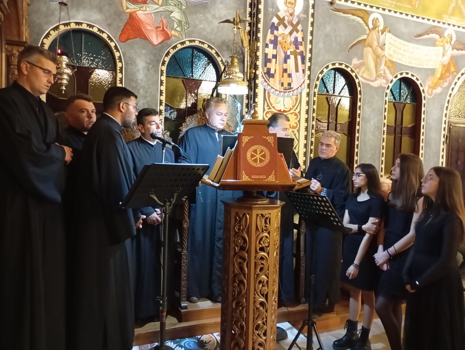 Το Σάββατο 2 Νοεμβρίου, το απόγευμα, τελέστηκε πανηγυρικός πολυαρχιερατικός Εσπερινός, στον πανηγυρίζοντα Ιερό Ναό Αγίου Γεωργίου Νέας Περιστάσεως Κατερίνης, χοροστατούντος του Σεβασμιωτάτου Μητροπολίτου Ιερισσού, Αγίου Όρους και Αρδαμερίου κ. Θεοκλήτου, ο οποίος κήρυξε και τον θ. λόγο. Συγχοροστάτησαν οι Σεβασμιώτατοι Μητροπολίτες Γέρων Καισαρείας κ. Θεοφύλακτος (Πατριαρχείο Αλεξανδρείας), Βεροίας, Ναούσης και Καμπανίας κ. Παντελεήμων, Σερβίων και Κοζάνης κ. Παύλος, Θεσσαλιώτιδος και Φαναριοφερσάλων κ. Τιμόθεος, Λαγκαδά, Λητής και Ρεντίνης κ. Πλάτων, καθώς και ο Θεοφιλέστατος Επίσκοπος Αμφιπόλεως κ. Χριστοφόρος, Βοηθός Επίσκοπος της Ιεράς Μητροπόλεως Σερβίων και Κοζάνης. Έψαλαν πολυμελείς Χοροί καθηγητών και μαθητών της Σχολής Βυζαντινής Μουσικής της Ιεράς Μητροπόλεως.