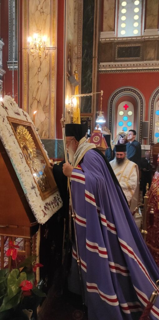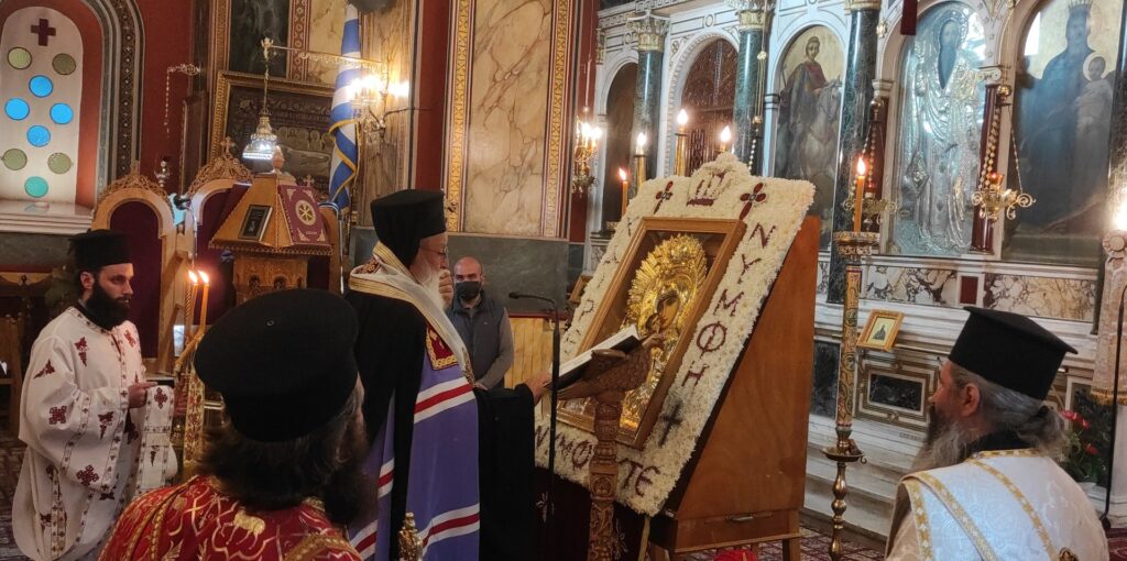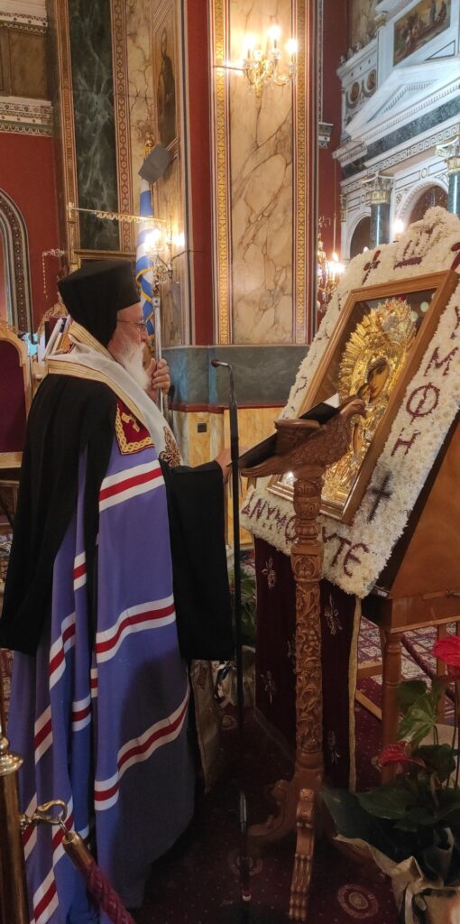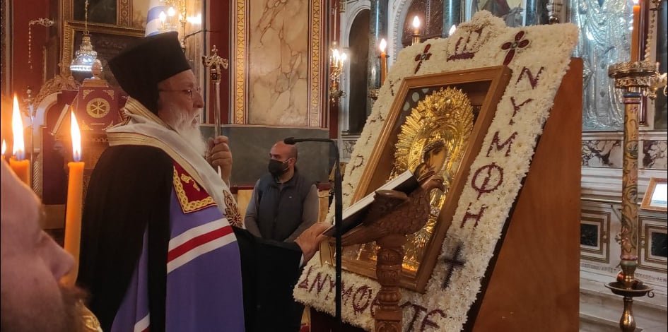 Ὁ Σεβασμιώτατος εὐχήθηκε  ἡ Παναγία Μητέρα μας, νά μάς προστατεύει, νά ἀπαλλαγούμε  ἀπό τήν μάστιγα τοῦ  κορωνοϊοῦ καί νά μας χαρίζει ὑγίεια , ἔτσι ὥστε νά ζήσουμε τήν χαρά τῆς Ἀναστάσεως.