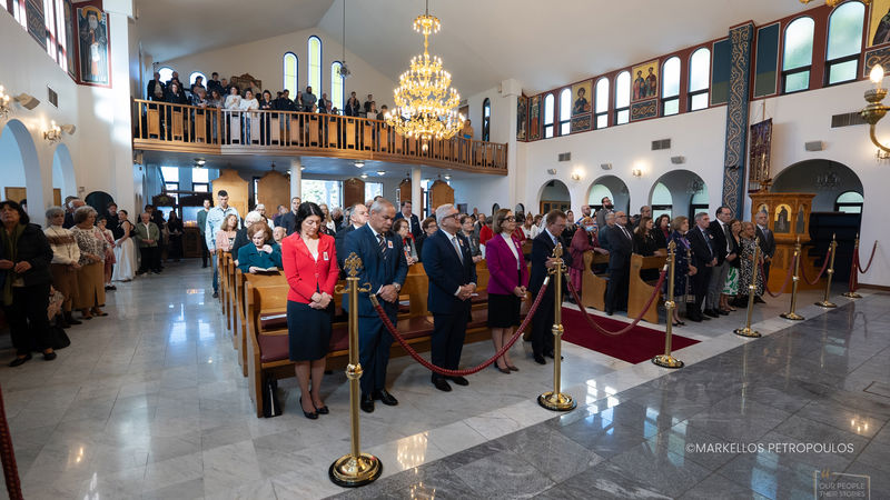 Ο Σεβασμιώτατος προεξήρχε της Θείας Λειτουργίας, πλαισιούμενος από τους Θεοφιλεστάτους Επισκόπους Βρισβάνης κ. Βαρθολομαίο και Μιλητουπόλεως κ. Ιάκωβο. Εκκλησιάστηκαν, μεταξύ άλλων, ο κ. Τσαμπίκος Αθανασάς, εκπρόσωπος του Επίτιμου Πρόξενου της Ελλάδος στη Βρισβάνη, κ. Γεωργίου Μαστροκώστα, ο πρώην Επίτιμος Πρόξενος και πρώην Πρόεδρος της Ενορίας κ. Δημήτριος Ράπτης, και ο Άρχων της Μ.τ.Χ.Ε. και Πρόεδρος της Ενορίας – Κοινότητας Αγίου Ιωάννου του Βαπτιστού Cairns, κ. Θεόδωρος Μπακαλάκης. Τιμητική ήταν η παρουσία του Δημάρχου του Δήμου Gold Coast κ. Tom Tate.