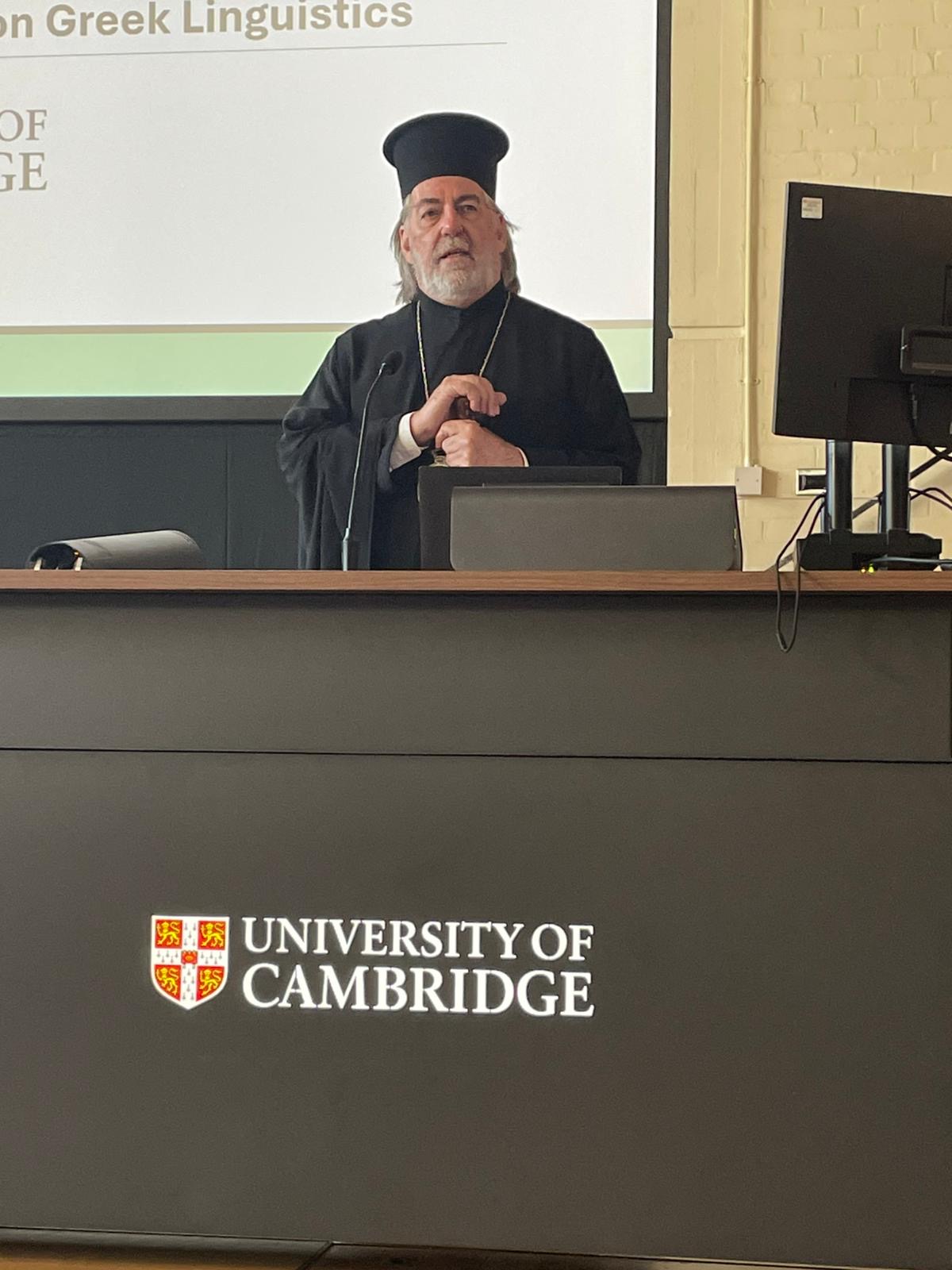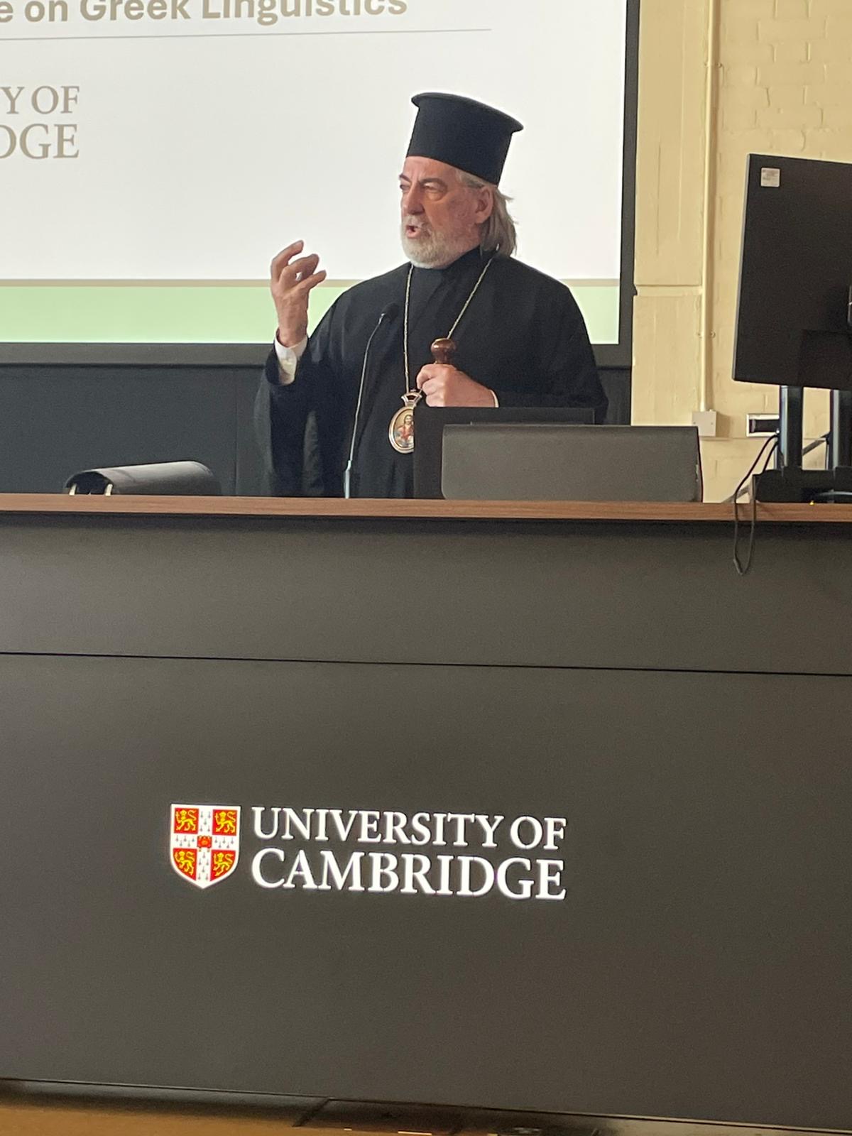 Η εναρκτήρια τελετή, η οποία πραγματοποιήθηκε στη μεγαλοπρεπή αίθουσα Lady Mitchell Hall, τιμήθηκε από την παρουσία του Εξοχωτάτου Πρέσβεως της Ελλάδος στο Ηνωμένο Βασίλειο, κ. Ιωάννη Τσαούση, και κορυφαίων ακαδημαϊκών προσωπικοτήτων του Πανεπιστημίου, όπως ο Καθηγητής Charles Forsdick και ο Καθηγητής John David Rhodes. Ο Σεβασμιώτατος, στην εμπεριστατωμένη ομιλία του, ανέπτυξε με διαύγεια και συγκίνηση τον αναντικατάστατο ρόλο της Εκκλησίας ως θεματοφύλακα της ελληνικής γλώσσας ανά τους αιώνες.