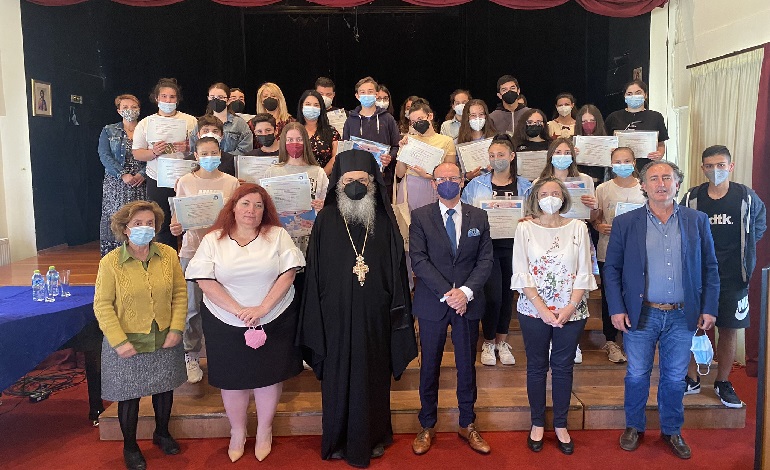 Η εκδήλωση απονομής των πτυχίων πιστοποίησης στη Γαλλική Γλώσσα πραγματοποιήθηκε σήμερα Τετάρτη 11 Μαΐου 2022 στα Εκπαιδευτήρια της Ιεράς Μητροπόλεως Πειραιώς. Τα πτυχία απονεμήθηκαν από τον κ.Νικολά Χριστοδούλου, Διευθυντή του Γαλλικού Ινστιτούτου Ελλάδας, επίσημου φορέα διοργάνωσης εξετάσεων για τα πτυχία της Γαλλικής Γλώσσας.