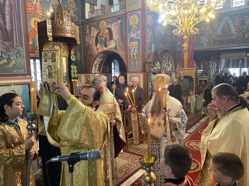 Στον πανηγυρίζοντα ιερό ναό της Υπαπαντής του Κυρίου στο χωριό Τριφύλλι Πέλλας χοροστάτησε και τέλεσε την Θεία Λειτουργία ο Θεοφιλέστατος Επίσκοπος Αλμωπίας κ. Στέφανος την Κυριακή 2 Φεβρουαρίου 2025. Στο κήρυγμά του αναφέρθηκε στην εορτή της Υπαπαντής του Κυρίου από τον δίκαιο Συμεών τον Θεοδόχο και εξήγησε την παράδοση και το νόημα του σαραντισμού. Υπογράμμισε ακόμη την αξία του εκκλησιασμού και προέτρεψε στην καλλιέργεια των προϋποθέσεων, προκειμένου να γίνουμε όλοι Χριστοφόροι.