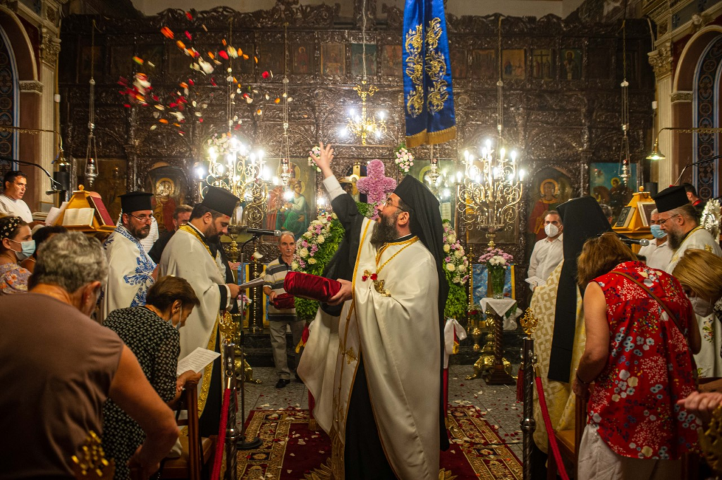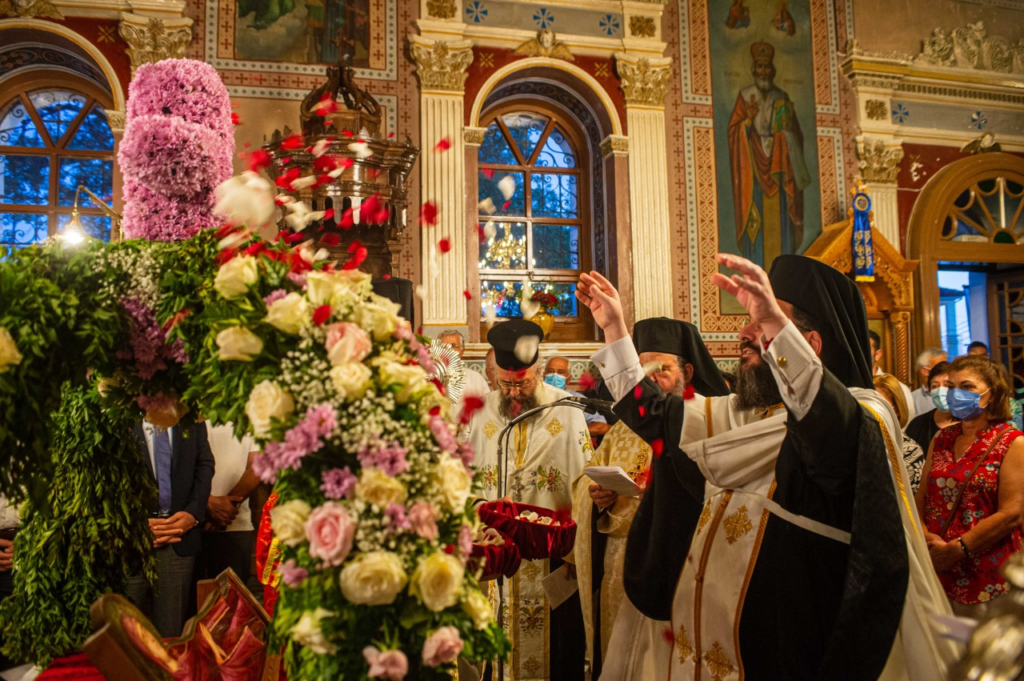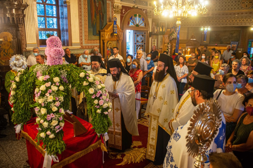 Με την παρουσία πλήθους πιστών, από την ευρύτερη περιοχή της Καλαμάτας, τιμήθηκε η εορτή της Κοιμήσεως της Θεοτόκου, στον ομώνυμο ενοριακό Ιερό Ναό, της συνοικίας των Λεΐκων της Καλαμάτας. Το εσπέρας της κυριωνύμου τελέσθηκε ο μεθέορτος εσπερινός, προεξάρχοντος του Πρωτοσύγκελλου της Ιεράς Μητροπόλεως Μεσσηνίας, Αρχιμ. Φιλίππου Χαμαργιά, πλαισιωμένου υπό πολλών κληρικών της Καλαμάτας. Προ του πέρατος του εσπερινού εψάλησαν τα Εγκώμια της Παναγίας και εν συνεχεία λιτανεύθηκε το Ιερό Κουβούκλιο του Επιταφίου, με την συνοδεία της φιλαρμονικής του Δήμου Καλαμάτας και προεστώτος του λαού του Δημάρχου Καλαμάτας κ. Αθανασίου Βασιλόπουλου, του Προέδρου του Δημ. Συμβουλίου Καλαμάτας κ. Δημητρίου Πολίτη και πολλών μελών αυτού. Στη σύντομη προσλαλιά του ο π. Φίλιππος τόνισε πως “Η Παναγία μας είναι γεγονός πως, σύμφωνα με τις Γραφές, δεν μίλησε πολλές φορές. Όμως παρότι δεν μίλησε, εν τούτοις είναι το πρόσωπο εκείνο το οποίο πάντοτε ακούει τις παρακλήσεις, τις δεήσεις, τις προσευχές και τα αιτήματα των παιδιών Της”. Τέλος ευχαρίστησε τους παρευρισκομένους άρχοντες και συνεχάρη τον εφημέριο της ενορίας π. Γεώργιο Κωνσταντόπουλο για την άψογη διοργάνωση της πανηγύρεως.
