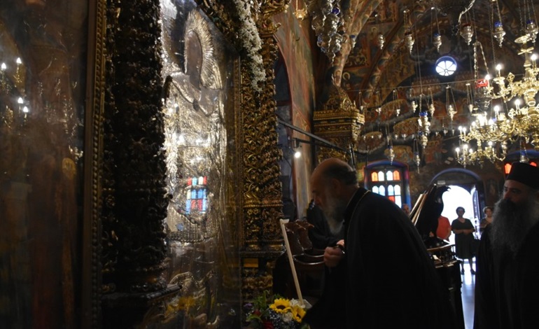 Τον Σεβασμιώτατο Μητροπολίτη μας υπεδέχθη ο Πανοσιολογιώτατος Καθηγούμενος της Ιεράς Μονής μας, Αρχιμανδρίτης του Οικουμενικού Θρόνου π. Αντώνιος Πατρός.