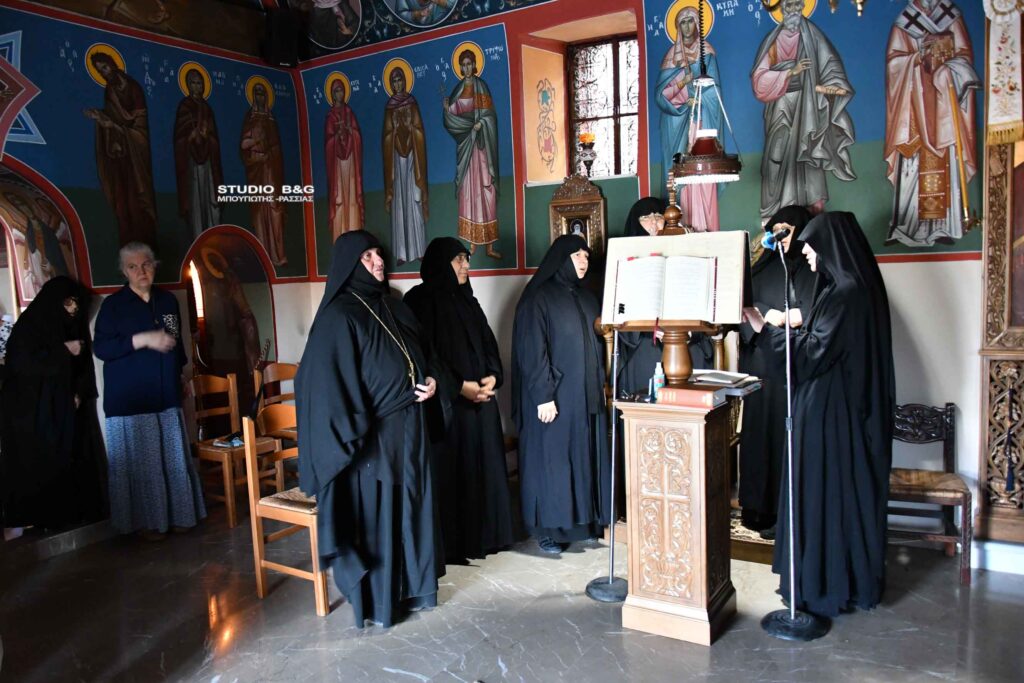 Καθόλη τη διάρκεια του όρθρου και της θείας λειτουργίας έψαλλε χορωδία από μοναχές από την Ιερά μονή  Αγίου Ιωάννου Προδρόμου του Μακρυνού