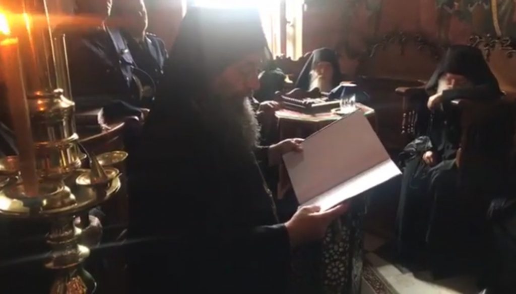 Τελευταίος πνευματικός σταθμός του κ. Βαρθολομαίου ήταν η παρουσία του στην Ιερά Μονή Παντοκράτορος, στην οποία τέλεσε τρισάγιο στον καθηγούμενο και κτίτορος της Ιεράς Μονής Βησσαρίωνος μακαριστό Βησσαρίωνος.