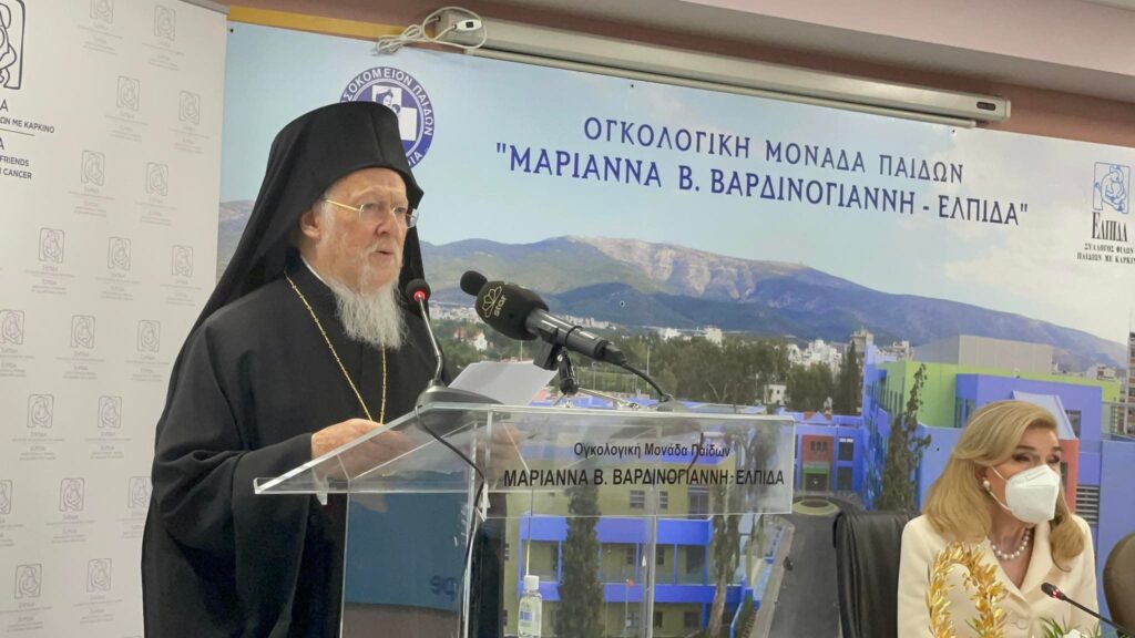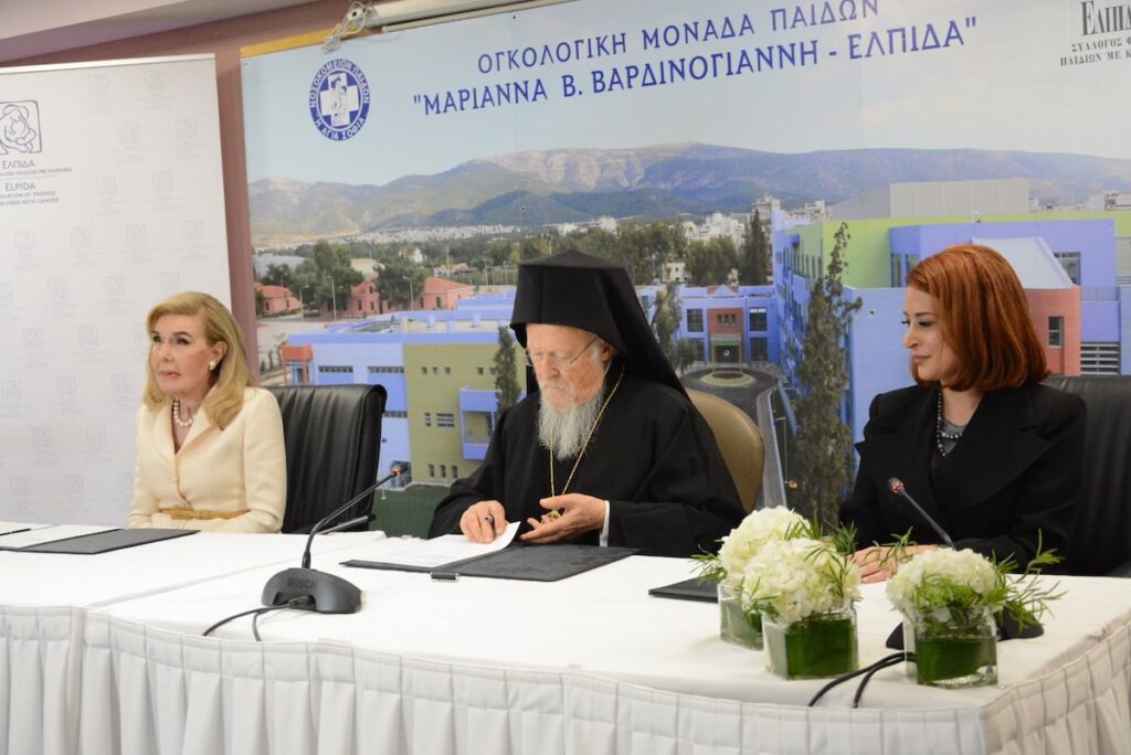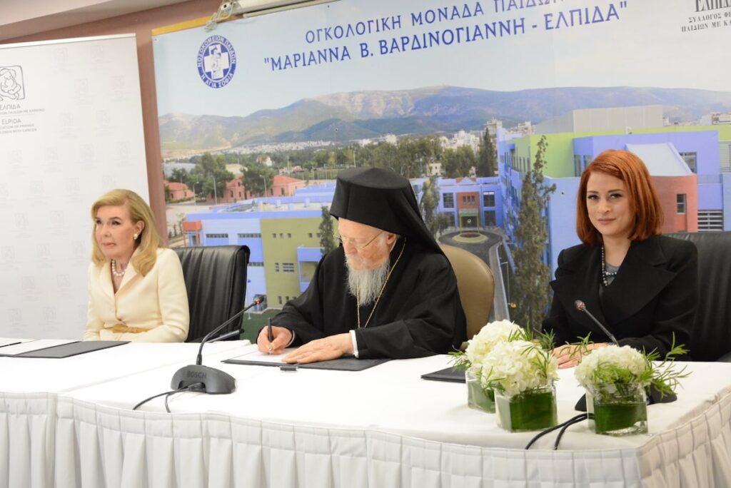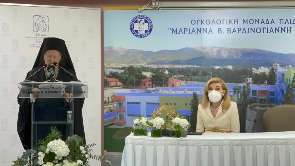 Την Ογκολογική Μονάδα Παίδων «Μαριάννα Β. Βαρδινογιάννη – ΕΛΠΙΔΑ» επισκέφθηκε ο Παναγιώτατος Οικουμενικός Πατριάρχης κ.κ. Βαρθολομαίος, μαζί με την συνοδεία του, την Τετάρτη, 24 Νοεμβρίου 2021, όπου έγινε θερμά δεκτός από την Πρόεδρο των Σωματείων “ΕΛΠΙΔΑ” και “Σύλλογος Όραμα Ελπίδας”, Ευγεν. κ. Μαριάννα Βαρδινογιάννη, και τα στελέχη της Διοίκησης και του Ιατρικού και νοσηλευτικού προσωπικού του Νοσηλευτικού ιδρύματος. Ο Παναγιώτατος τέλεσε δέηση στο Παρεκκλήσιο της Αγίας Άννης υπέρ αποκατάστασης της υγείας υγείας των νοσηλευομένων παιδιών και ενίσχυσης των οικογενειών τους, αλλά και του διοικητικού, ιατρικού και νοσηλευτικού προσωπικού της Μονάδας.Στη συνέχεια μετέβη στην Αίθουσα Τελετών του Θεραπευτηρίου, όπου στην είσοδο τον ανέμεναν μικροί ασθενείς στους οποίους έδωσε την πατρική ευχή και την Πατριαρχική ευλογία του για γρήγορη αποθεραπεία και στην συνέχεια τον Παναγιώτατο καλωσόρισαν ο Εντιμ. κ. Εμμανουήλ Παπασάββας, Διοικητής των Νοσοκομείων Παίδων “Αγία Σόφια” και “Π&Α. Κυριακού”, και η Ευγεν. κ. Μαριάννα Βαρδινογιάννη, οι οποίοι αναφέρθηκαν στο σημαντικό έργο που πραγματοποιείται στην Ογκολογική Μονάδα Παίδων.Η κ. Βαρδινογιάννη στον χαιρετισμό της, μεταξύ άλλων, ανέφερε:”Η παρουσία σας, σημαίνει τόσα πολλά για όλους μας, μα κυρίως για τους μικρούς μας ασθενείς και τους γονείς τους. Αποτελεί μια κορυφαία στιγμή στην ιστορία του Συλλόγου μας, καθώς με την ευλογία σας μεταδίδετε ελπίδα και αγάπη, απαλύνοντας τον πόνο και την αγωνία παιδιών και γονιών. Η δέηση που μόλις πραγματοποιήσατε στο εκκλησάκι της Αγίας Άννης ζέστανε τις καρδιές και τις ψυχές μας, δίνοντάς μας δύναμη να συνεχίσουμε τον αγώνα μας απέναντι στον παιδικό καρκίνο και σας ευχαριστώ θερμά γι’αυτό, εκ μέρους των παιδιών, των γονιών, του ιατρικού και νοσηλευτικού μας προσωπικού.Υποκλινόμαστε με βαθύτατο σεβασμό μπροστά στη μεγάλη σας ευαισθησία και στο θεάρεστο και πολυδιάστατο έργο σας. Είστε μια κορυφαία προσωπικότητα, με παγκόσμια ακτινοβολία και αποτελείτε τον οικουμενικό θεματοφύλακα της ορθόδοξης πίστης μας φροντίζοντας μέσα από τις πράξεις και τα λόγια σας να φτάσουν στα πέρατα της γης τα διδάγματα της Εκκλησίας μας για αγάπη, ταπεινότητα, αλληλεγγύη και συναδέλφωση.Η συμφωνία που σήμερα έχουμε την τιμή να υπογράφουμε με το Οικουμενικό Πατριαρχείο θα χαρίσει ελπίδα σε χιλιάδες ασθενείς, παιδιά και ενήλικες, που αναζητούν ένα συμβατό δότη. Γίνεστε ένας πολύτιμος σύμμαχος στην προσπάθειά μας να ευαισθητοποιήσουμε την κοινωνία γύρω από την ανάγκη εθελοντικής προσφοράς αιμοποιητικών κυττάρων”.Στην ομιλία του ο Οικουμενικός Πατριάρχης εξέφρασε τον θαυμασμό του για το επιτελούμενο φιλόθεο και φιλάνθρωπο έργο των δύο Σωματείων, και κυρίως για την ανεκτίμητη προσφορά τους στα παιδιά και για την στήριξη που παρέχουν στους γονείς τους.”Η αγάπη είναι η υψίστη αλήθεια της ζωής μας, η δύναμις η οποία υπερβαίνει το ανθρώπινον μέτρον και βιούται πάντοτε ως χάρις και δώρον. Όπου υπάρχει αγάπη, όπως εις τον ιερόν τούτον τόπον και εις τας καρδίας πάντων υμών των διακονούντων εις αυτόν, τα πάντα ευωδιάζουν ελπίδα και ανάστασιν, είναι παρών ο Θεός της αγάπης. Η αγάπη ανατρέπει όλα τα δήθεν αυτονόητα, κατεργάζεται θαύματα.Μεγάλη δύναμις είναι και η επιστήμη, η οποία επιλύει προβλήματα, θεωρούμενα επί αιώνας ως ανυπέρβλητα. Θεραπεύει ασθενείας, σώζει ζω