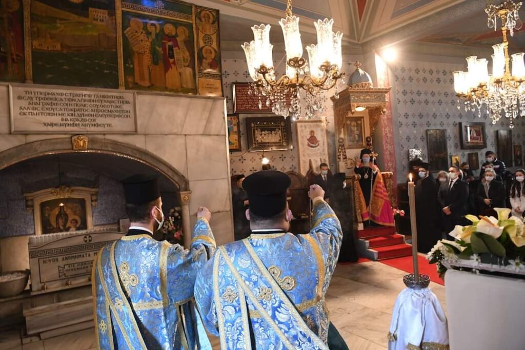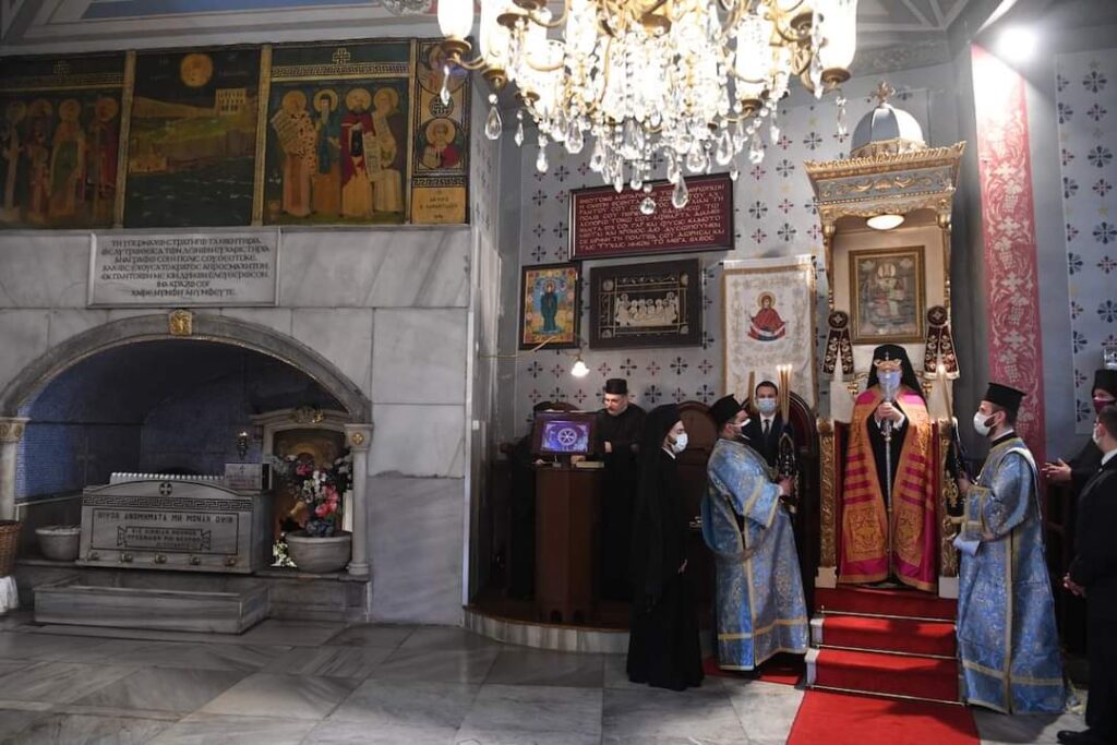Προηγουμένως, τον Παναγιώτατο καλωσόρισε ο Θεοφιλ. Επίσκοπος Αλικαρνασσού κ. Αδριανός, ο οποίος αναφέρθηκε στο πρόσωπο της Υπεραγίας Θεοτόκου.
