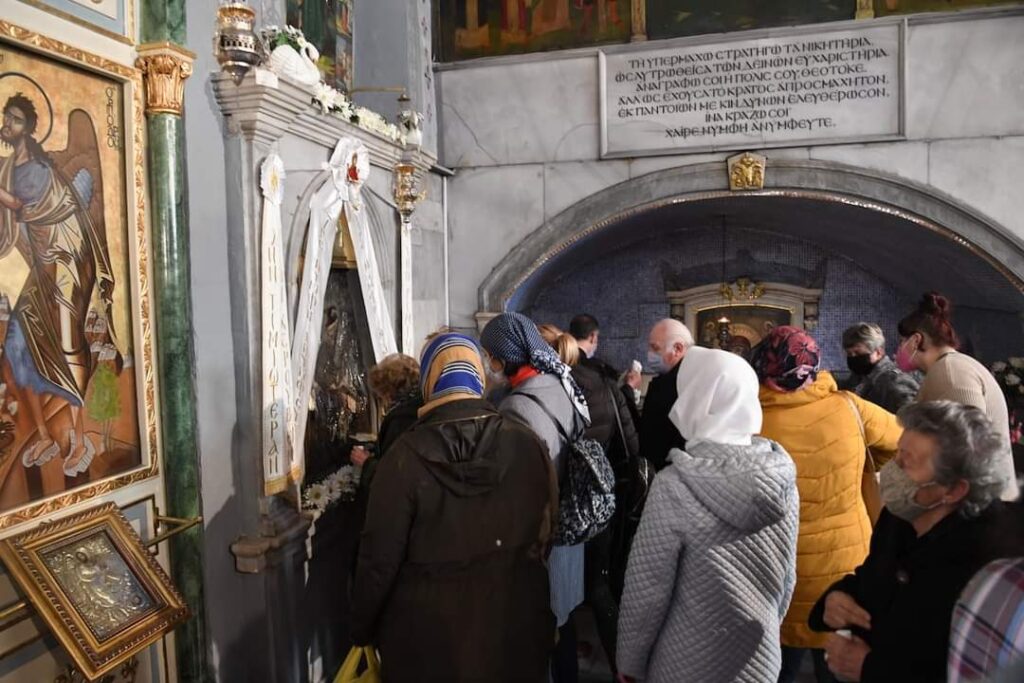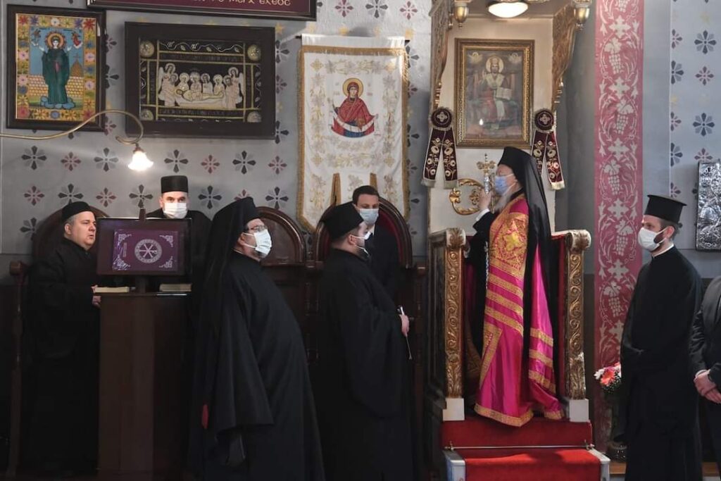 Η Α.Θ. Παναγιότης ο Οικουμενικός Πατριάρχης κ.κ. Βαρθολομαίος, χοροστάτησε σήμερα, Παρασκευή, 2 Απριλίου 2021, το πρωί, κατά παλαιά παράδοση, στο Ιερό Αγίασμα της Παναγίας των Βλαχερνών, στην Ι. Ακολουθία της Γ’ Στάσης των Χαιρετισμών.